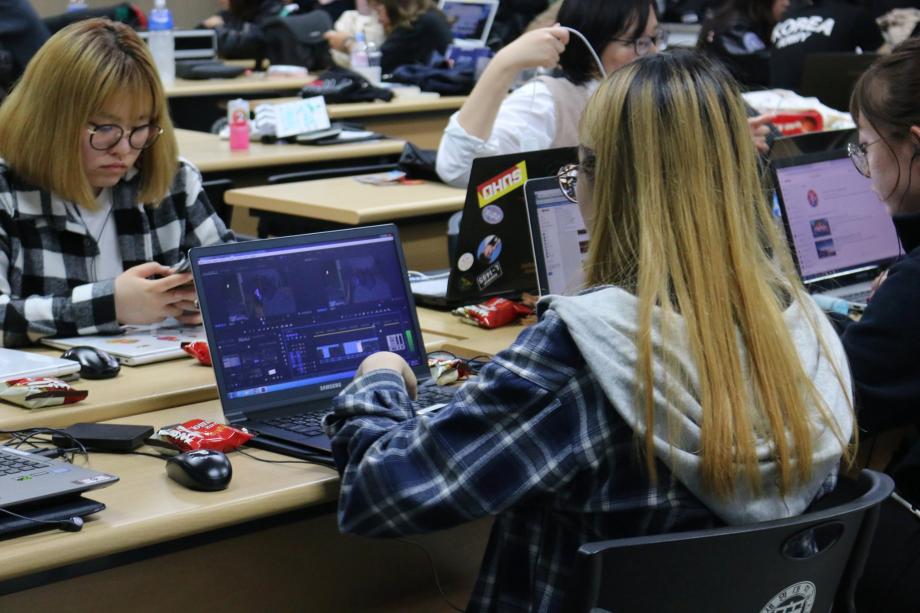교수님들께서 주제를 선정해주시면, 주제에 맞게 선후배로 이루어진 팀끼리 시나리오 작성부터 편집까지 작품을 만들고,