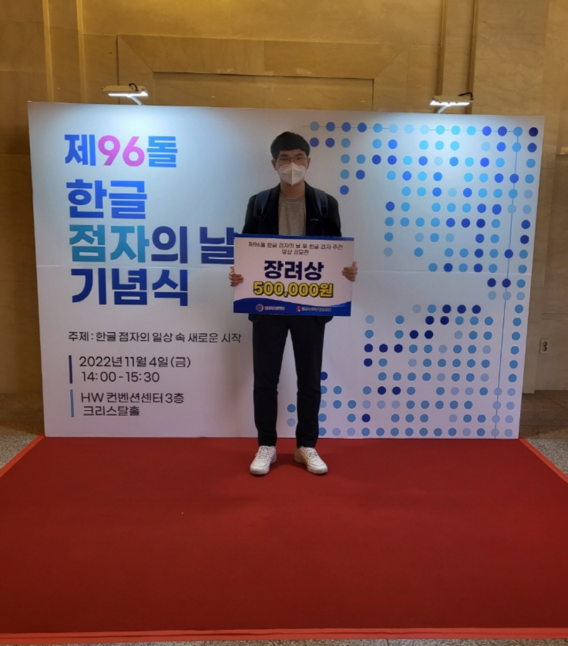 디지털콘텐츠창작학과 황인철 학생이 문화체육관광부가 주최하고 한국시각장애인연합회가 주관한 <디지털기기 점자디자인&영상공모전>에서 입상했다.