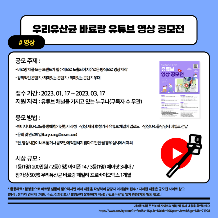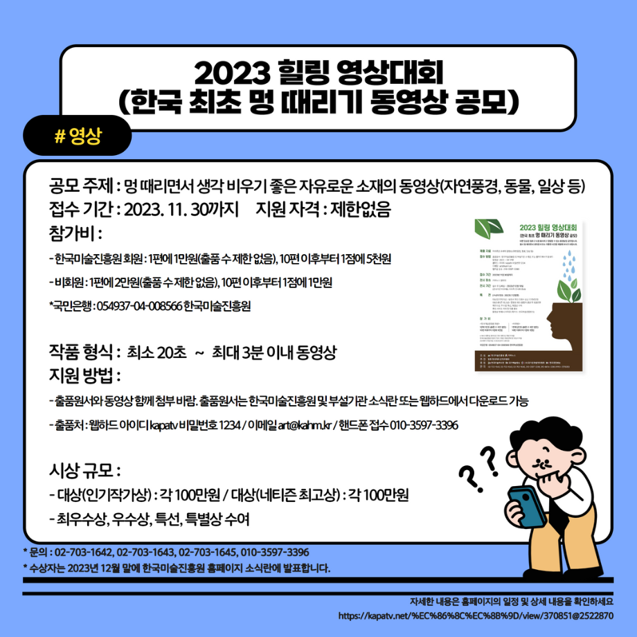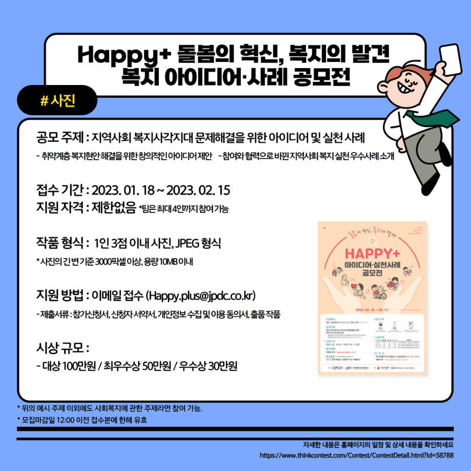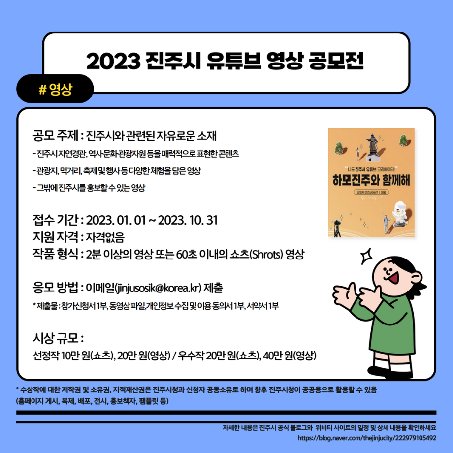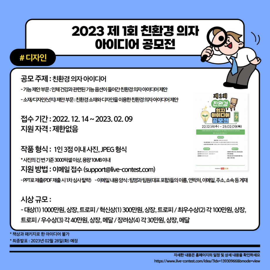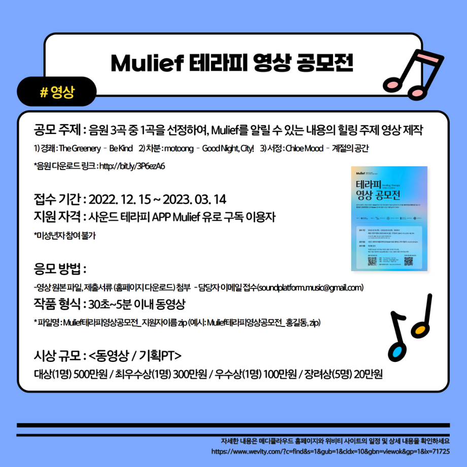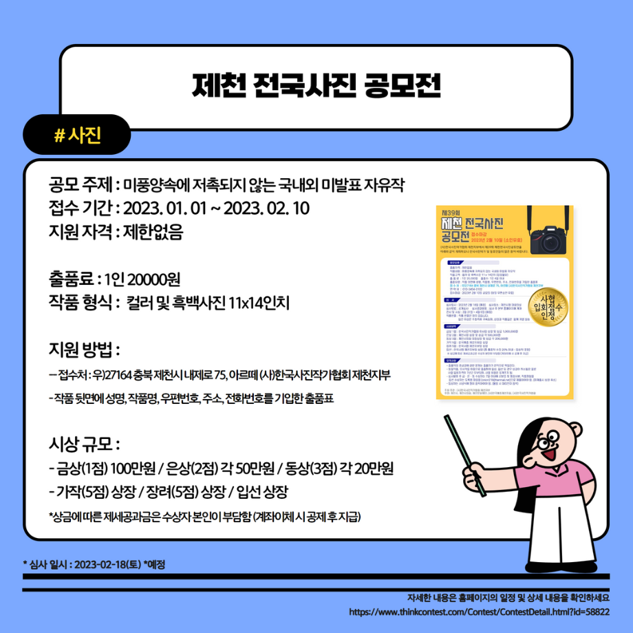 본문 시작 홈으로 MCC News 학과소개 교수소개 학과과정 MCC News MCC SNS 홈페이지가이드 학과 및 재학생 학과 및 재학생 교수 및 졸업생 미디어 정보통 학과 및 재학생 페이스북 트위터 프린트 2023학년도 교외 공모전을 알려드려요 디지털콘텐츠창작학과 4295 2023-02-01 2023학년도 영상, 디자인, 사진 분야의 공모전을 알려드립니다! 겨울방학 동안 다양한 공모전에 참여하며 경험을 쌓는 것은 어떨까요? 목록 이전세명인이라면 알아야 할 꿀팁 앱 다음 23학번 신입생들을 위한 디콘창 Q&A❓ 담당부서 : 미디어콘텐츠창작학과 담당자 : - 연락처 : 043-649-1741 최종수정일 : 2024-10-26 만족도조사 만족도 조사 이 페이지에서 제공하는 정보에 대하여 만족하시나요? 매우만족 만족 보통 불만족 매우불만족