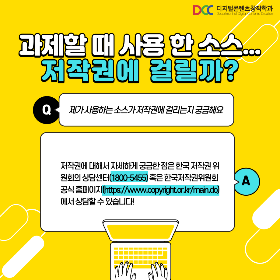 본문 시작 홈으로 MCC News 학과소개 교수소개 학과과정 MCC News MCC SNS 홈페이지가이드 학과 및 재학생 학과 및 재학생 교수 및 졸업생 미디어 정보통 학과 및 재학생 페이스북 트위터 프린트 과제 할 때 쓰기 좋은 사이트 디지털콘텐츠창작학과 4731 2023-06-02 과제할 때 사용하기 좋은 사이트를 공유해드려요! 저작권 걱정 없는 사이트들을 정리해봤습니다! 학우 분들의 과제 만점을 위해! 저작권 걱정 없는 사이트를 확인해보세요 :) 목록 이전제11회 24시간 필름페스티벌 엔딩 영상 다음 🍭 오늘의 디콘 15탄 🍭 담당부서 : 미디어콘텐츠창작학과 담당자 : - 연락처 : 043-649-1741 최종수정일 : 2024-10-26 만족도조사 만족도 조사 이 페이지에서 제공하는 정보에 대하여 만족하시나요? 매우만족 만족 보통 불만족 매우불만족