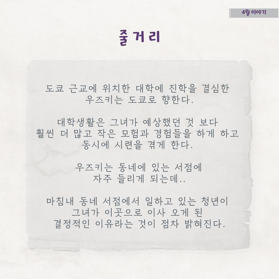 본문 시작 홈으로 MCC News 학과소개 교수소개 학과과정 MCC News MCC SNS 홈페이지가이드 학과 및 재학생 학과 및 재학생 교수 및 졸업생 미디어 정보통 학과 및 재학생 페이스북 트위터 프린트 디콘창이 추천하는 영화 추천 6선 4탄 디지털콘텐츠창작학과 4474 2023-07-14 세명대학교 디지털콘텐츠창작학과가 추천하는 영화 추천 6선 시리즈 네 번째입니다! 4탄의 추천 영화는 '4월 이야기'입니다. 영화 추천 시리즈에는 추천 영화의 줄거리, 스틸컷, 감상 가능한 사이트, 교수님의 한 줄 평까지 볼 수 있습니다. 짧지만 알찬 정보는 담았으니, 다양한 장르의 추천 영화를 감상해 보시고 여러분들의 한 줄 평을 남겨주세요! 앞으로 올라올 5탄도 학우분들의 많은 관심 부탁드립니다!❤ 목록 이전📚여름방학 자기계발 플랫폼📚 다음 🍭 오늘의 디콘 18탄 🍭 담당부서 : 미디어콘텐츠창작학과 담당자 : - 연락처 : 043-649-1741 최종수정일 : 2024-10-26 만족도조사 만족도 조사 이 페이지에서 제공하는 정보에 대하여 만족하시나요? 매우만족 만족 보통 불만족 매우불만족