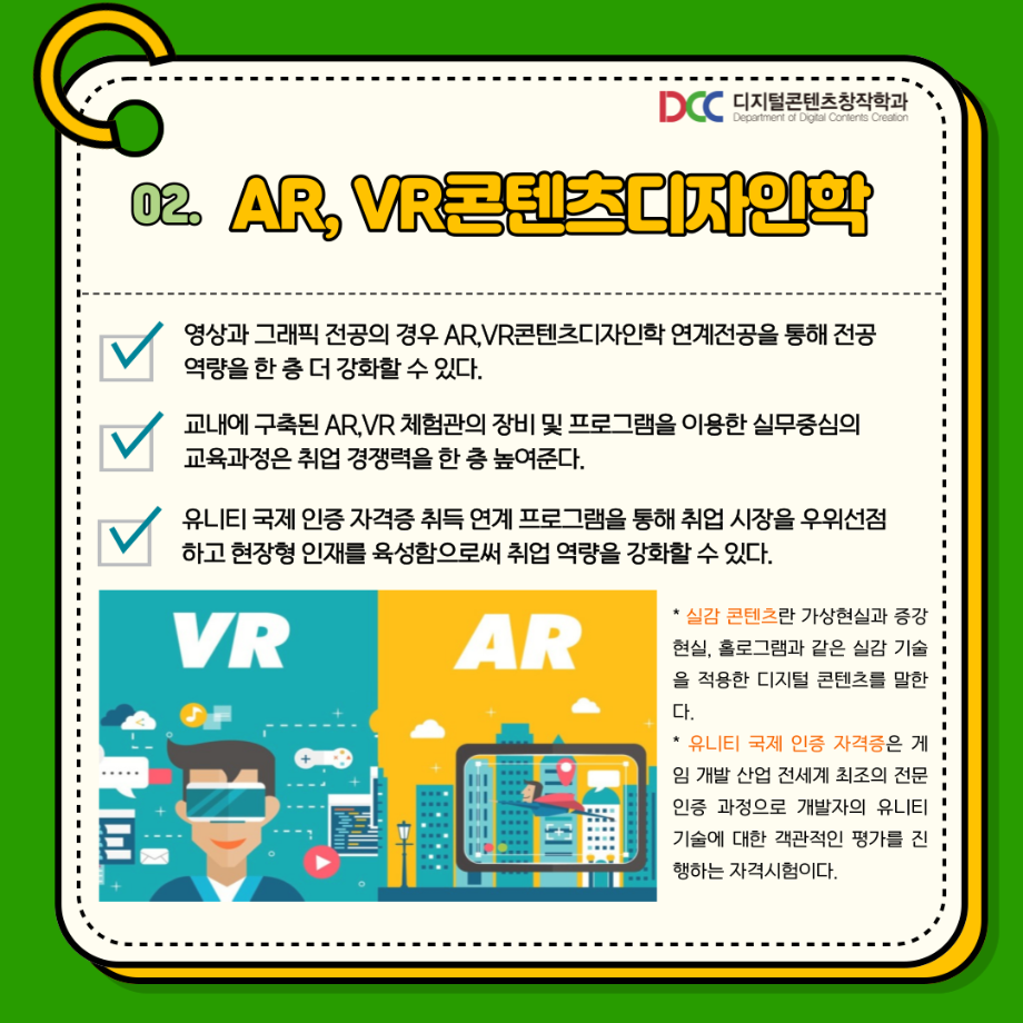 본문 시작 홈으로 MCC News 학과소개 교수소개 학과과정 MCC News MCC SNS 홈페이지가이드 학과 및 재학생 학과 및 재학생 교수 및 졸업생 미디어 정보통 학과 및 재학생 페이스북 트위터 프린트 학생회가 알려주는 연계전공📚 디지털콘텐츠창작학과 4601 2023-07-27 디지털콘텐츠창작학과와 연계할 수 있는 전공이 있다고⁉ 디콘창 학생회가 연계전공에 대해 알려드려요!! 다양한 전공수업을 배워보며 다양한 전공을 배워보는 건 어떨까요? 목록 이전디콘창이 추천하는 영화 추천 6선 5탄 다음 📝디콘창 학생회 월말결산 담당부서 : 미디어콘텐츠창작학과 담당자 : - 연락처 : 043-649-1741 최종수정일 : 2024-10-26 만족도조사 만족도 조사 이 페이지에서 제공하는 정보에 대하여 만족하시나요? 매우만족 만족 보통 불만족 매우불만족