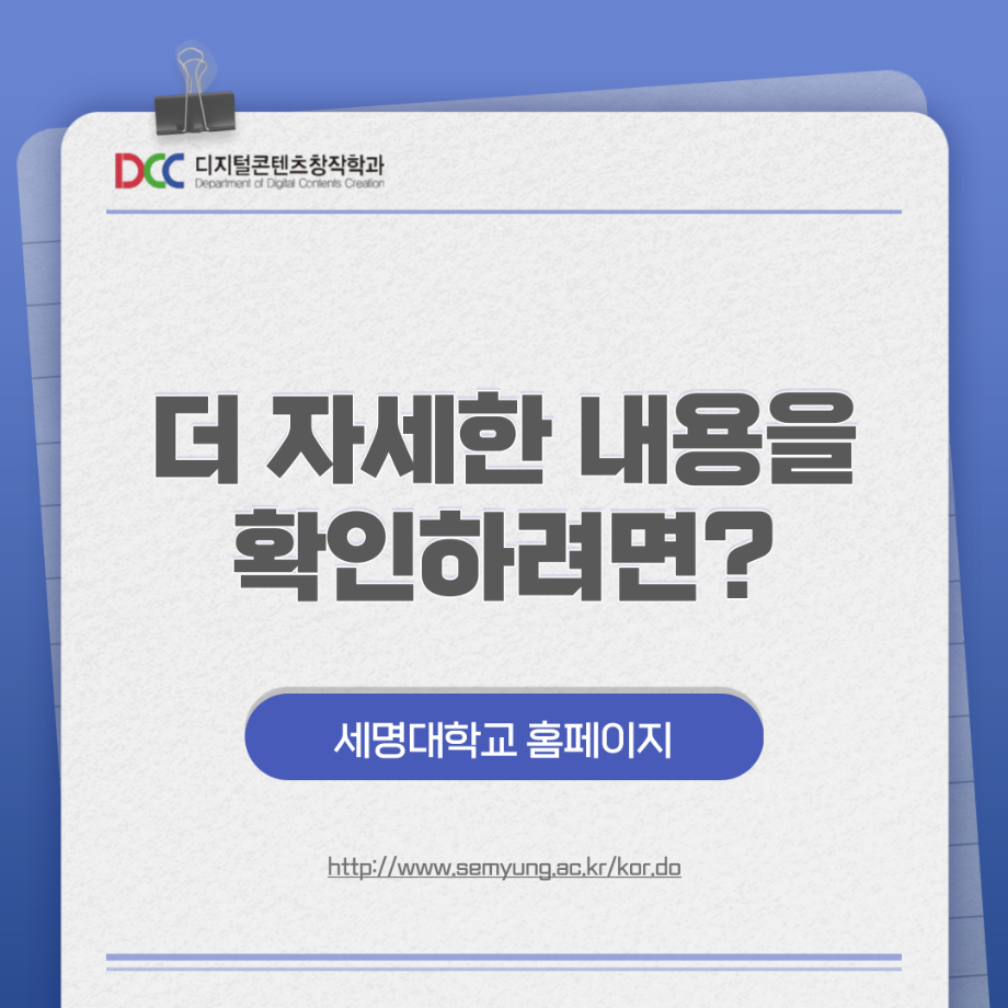 본문 시작 홈으로 MCC News 학과소개 교수소개 학과과정 MCC News MCC SNS 홈페이지가이드 학과 및 재학생 학과 및 재학생 교수 및 졸업생 미디어 정보통 학과 및 재학생 페이스북 트위터 프린트 📚디콘창 세부전공 소개📚 디지털콘텐츠창작학과 5100 2023-08-22 디지털콘텐츠창작학과 세부전공이 궁금한 학우분들을 위해 준비했습니다! 더 자세한 내용이 궁금하시다면 디지털콘텐츠창작학과 홈페이지에서 확인해볼 수 있습니다! 홈페이지 http://www.semyung.ac.kr/media-c.do 목록 이전교내 촬영 장소 추천! 다음 📷디콘창 “촬영”장비 소개📷 담당부서 : 미디어콘텐츠창작학과 담당자 : - 연락처 : 043-649-1741 최종수정일 : 2024-10-26 만족도조사 만족도 조사 이 페이지에서 제공하는 정보에 대하여 만족하시나요? 매우만족 만족 보통 불만족 매우불만족