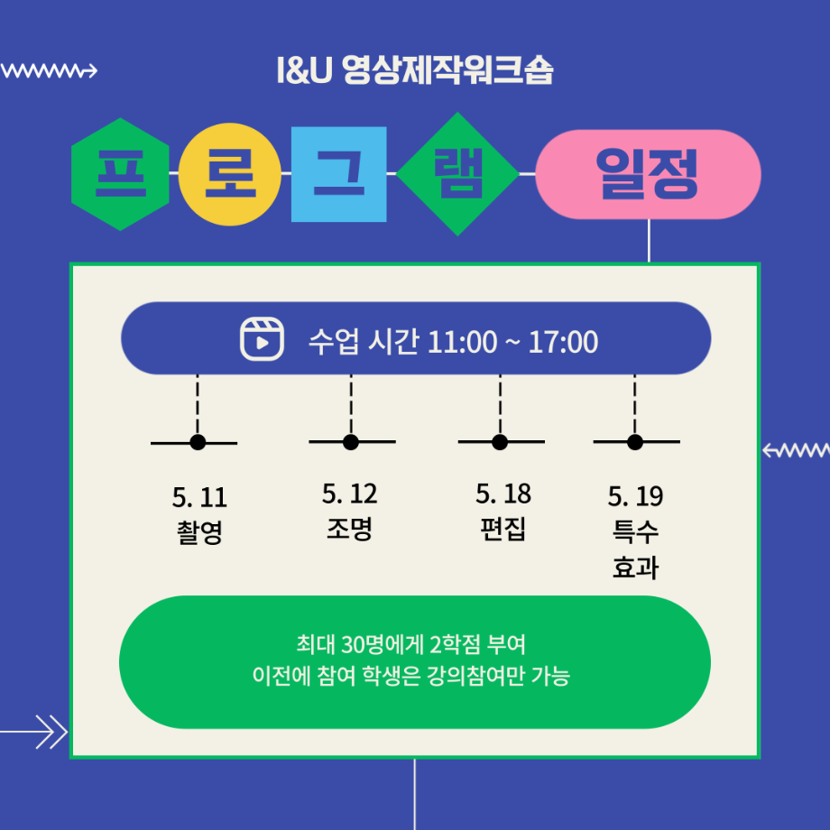 본문 시작 홈으로 MCC News 학과소개 교수소개 학과과정 MCC News MCC SNS 홈페이지가이드 학과 및 재학생 학과 및 재학생 교수 및 졸업생 미디어 정보통 학과 및 재학생 페이스북 트위터 프린트 🚩2024 I&U 프로그램 '영상제작워크숍'🚩 디지털콘텐츠창작학과 2875 2024-05-22 디지털콘텐츠창작학과에서는 2024년 5월 중순 주말동안 '영상제작워크숍'을 성공적으로 진행하였습니다. 이번 워크숍에서는 영상 제작의 모든 과정에 대해 깊이 이해할 수 있는 기회와 동시에 이수한 학생들에게 2학점을 수여하였습니다. 프로그램을 참여한 학생들은 이러한 과정을 학습하고 실습하는 시간을 가지며 본인의 창의적 역량을 키울 수 있었습니다. 참여하신 학생 여러분들 고생하셨습니다. 목록 이전🚩청룡체전 먹거리부스🚩 다음 🌹디지털콘텐츠창작학과 성년의 날 행사🌹 담당부서 : 미디어콘텐츠창작학과 담당자 : - 연락처 : 043-649-1741 최종수정일 : 2024-10-26 만족도조사 만족도 조사 이 페이지에서 제공하는 정보에 대하여 만족하시나요? 매우만족 만족 보통 불만족 매우불만족