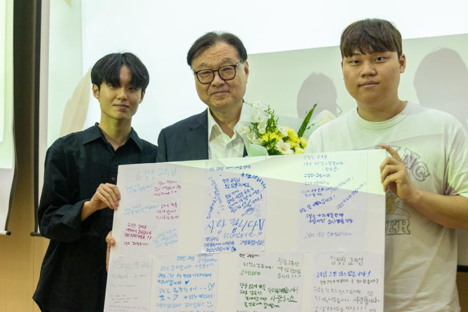 본문 시작 홈으로 MCC News 학과소개 교수소개 학과과정 MCC News MCC SNS 홈페이지가이드 학과 및 재학생 학과 및 재학생 교수 및 졸업생 미디어 정보통 학과 및 재학생 페이스북 트위터 프린트 🌷김정진, 김영근 교수님 퇴임식💐😭 미디어콘텐츠창작학과 3038 2025-06-25 5월 27일 화요일 학술관 제2 컨퍼런스 홀에서 김정진, 김영근 교수님의 퇴임식이 진행되었습니다. 김정진 교수님의 마지막 고별강의가 진행되었으며 학생들에게 소설가가 되려면 어떻게 해야하는지, 또 학생들을 위해 좋은 얘기들을 전달해주셨습니다! 김영근 교수님은 아쉽게도 개인사정이 있으셔서 퇴임식에 참석하지 못하셨습니다. 교수님들의 퇴임을 축하드리며 앞으로의 앞날을 항상 응원하도록 하겠습니다! 감사했습니다! 목록 이전🚗MT🚗 다음 ”미콘창 체육 잘 하네..?“ 💪💪 담당부서 : 미디어콘텐츠창작학과 담당자 : - 연락처 : 043-649-1741 최종수정일 : 2024-10-26 만족도조사 만족도 조사 이 페이지에서 제공하는 정보에 대하여 만족하시나요? 매우만족 만족 보통 불만족 매우불만족