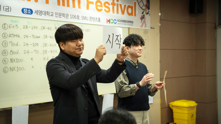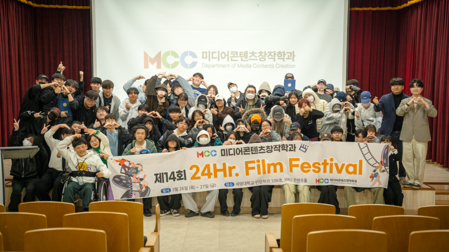 본문 시작 홈으로 MCC News 학과소개 교수소개 학과과정 MCC News MCC SNS 홈페이지가이드 학과 및 재학생 학과 및 재학생 교수 및 졸업생 미디어 정보통 학과 및 재학생 페이스북 트위터 프린트 제14회 24시간 필름 페스티벌 미디어콘텐츠창작학과 45 2026-04-01 미디어콘텐츠창작학과의 행사인 24시간 필름 페스티벌이 3월 26일부터 27일까지 24시간 동안 진행되었습니다. 학과 대표 행사인 24시간 필름 페스티벌은 24시간 동안 주어진 주제에 맞게 각본, 촬영, 편집을 통해 작품을 만드는 행사입니다. 올해는 총 6개의 팀으로 나누어져 ’시작‘을 주제로 영상을 제작했습니다. 학생 여러분 모두 24시간 동안 쉬지 않고 작품 제작 하시느라 고생 많으셨습니다! 목록 이전2026학년도 미디어콘텐츠창작학과 개강총회 담당부서 : 미디어콘텐츠창작학과 담당자 : - 연락처 : 043-649-1741 최종수정일 : 2024-10-26 만족도조사 만족도 조사 이 페이지에서 제공하는 정보에 대하여 만족하시나요? 매우만족 만족 보통 불만족 매우불만족