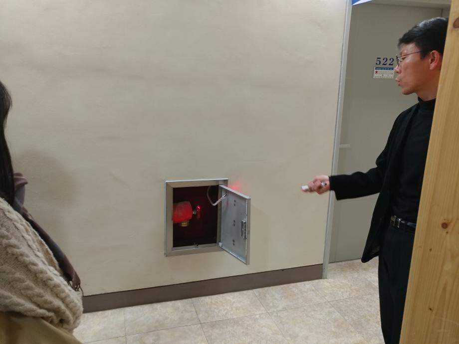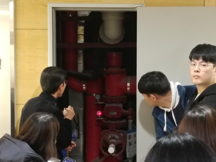 본문 시작 홈으로 커뮤니티 학과소개 교수소개 전공과정 커뮤니티 홈페이지가이드 학과행사 학과공지 채용정보 학사일정 학과행사 동아리 소방방재학과의 자랑 궁금합니다 수험생 Q&A 학과행사 페이스북 트위터 프린트 18-2학기 소방현장실무체험 소방방재학과 8178 2018-11-15 이번년도부터 개설된 교과목인 소방현장실무체험 과목에 대하여 김규현 강사님이 해당 과목을 수강중인 4학년 학생을 대상으로 교내의 학술관 건물의 전반적인 소방설비시스템을 실물을 통해 설명하였습니다. 목록 이전2018학년도 소방방재학과 M.T 다음 18-2 소방현장실무체험 담당부서 : 소방방재학과 담당자 : - 연락처 : 043-649-1787 최종수정일 : 2024-10-26 만족도조사 만족도 조사 이 페이지에서 제공하는 정보에 대하여 만족하시나요? 매우만족 만족 보통 불만족 매우불만족