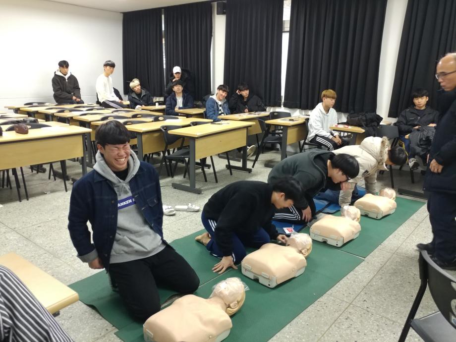 본문 시작 홈으로 커뮤니티 학과소개 교수소개 전공과정 커뮤니티 홈페이지가이드 학과행사 학과공지 채용정보 학사일정 학과행사 동아리 소방방재학과의 자랑 궁금합니다 수험생 Q&A 학과행사 페이스북 트위터 프린트 18-2학기 CPR 교육 소방방재학과 9022 2018-11-15 2018-2학기 소방방재학과에서 시행하는 프로그램 지원을 통해서 1학년 전체를 대상으로 대한적십자사에서 운영하는 CPR(심폐소생술)안전강습교육 4시간을 A,B 두개의 분반으로 진행하였습니다. 목록 이전18-2학기 CPR 교육 다음 2018년도 제 25회 전기 학위수여식 담당부서 : 소방방재학과 담당자 : - 연락처 : 043-649-1787 최종수정일 : 2024-10-26 만족도조사 만족도 조사 이 페이지에서 제공하는 정보에 대하여 만족하시나요? 매우만족 만족 보통 불만족 매우불만족