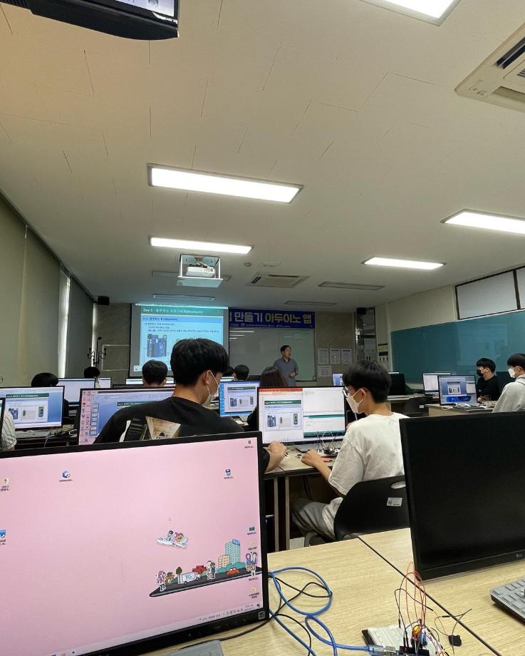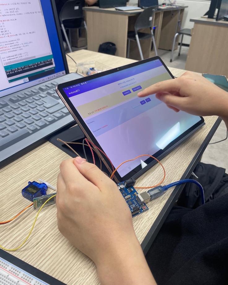 본문 시작 홈으로 커뮤니티 학과소개 교육과정 학과활동 커뮤니티 진로취업 입학상담 홈페이지가이드 포토갤러리 학과공지 포토갤러리 자유게시판 동영상 게시판 포토갤러리 페이스북 트위터 프린트 제천제일고등학교 특강 3일차 (나의 앱 만들기 아두이노 앱) 전자공학과 2921 2022-07-12 7/11일 제일고등학교 학생들을 대상으로 ‘나의 앱 만들기 아누이노 앱’ 특강 3일차를 진행했습니다. 3일차에는 각 센서를 어플을 이용하여 제어하였습니다. 각자 태블릿을 지급하여 직접 어플을 만드는 시간이였습니다. 목록 이전제천제일고등학교 특강 2일차 (나의 앱 만들기 아두이노 앱) 다음 제천제일고등학교 특강 4일차 (나의 앱 만들기 아두이노 앱) 담당부서 : 전자공학과 담당자 : - 연락처 : 043-649-1683 최종수정일 : 2024-10-26 만족도조사 만족도 조사 이 페이지에서 제공하는 정보에 대하여 만족하시나요? 매우만족 만족 보통 불만족 매우불만족