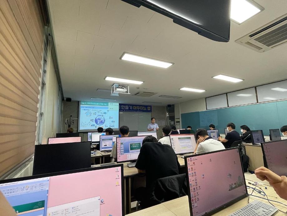 본문 시작 홈으로 커뮤니티 학과소개 교육과정 학과활동 커뮤니티 진로취업 입학상담 홈페이지가이드 포토갤러리 학과공지 포토갤러리 자유게시판 동영상 게시판 포토갤러리 페이스북 트위터 프린트 제천 세명고등학교 특강 1일차(나의 앱 만들기 아두이노 앱) 전자공학과 2924 2022-07-15 7/13일 세명고등학교 학생을 대상으로 ‘나의 앱 만들기 아두이노 앱’ 특강을 진행하였습니다. 1일차에 IoT관련 이론 교육 및 LED 제어와 같은 실습을 진행하였습니다! 목록 이전제천제일고등학교 특강 4일차 (나의 앱 만들기 아두이노 앱) 다음 제천 세명고등학교 특강 2일차(나의 앱 만들기 아두이노 앱) 담당부서 : 전자공학과 담당자 : - 연락처 : 043-649-1683 최종수정일 : 2024-10-26 만족도조사 만족도 조사 이 페이지에서 제공하는 정보에 대하여 만족하시나요? 매우만족 만족 보통 불만족 매우불만족