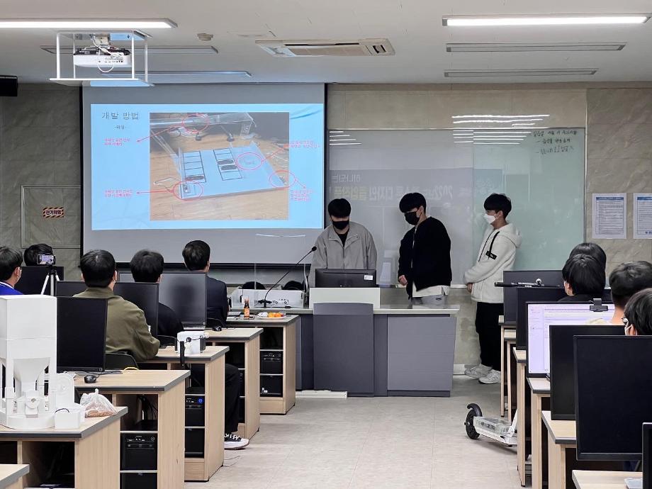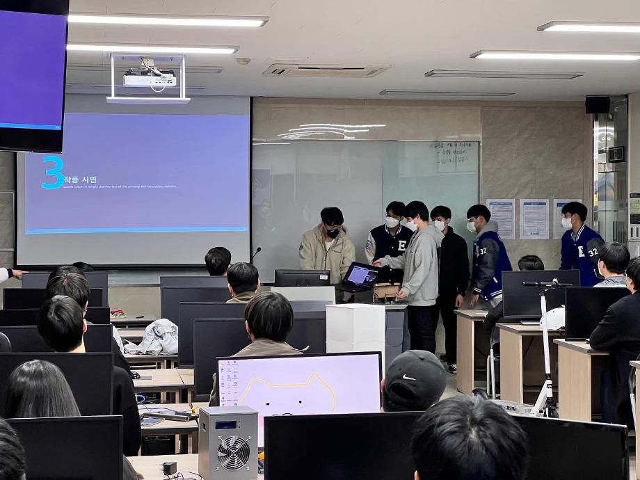 본문 시작 홈으로 커뮤니티 학과소개 교육과정 학과활동 커뮤니티 진로취업 입학상담 홈페이지가이드 포토갤러리 학과공지 포토갤러리 자유게시판 동영상 게시판 포토갤러리 페이스북 트위터 프린트 2022년 캡스톤 디자인 졸업작품 발표회 전자공학과 3443 2022-11-21 2022년도 캡스톤 디자인 졸업작품 발표회를 11/16일에 진행했습니다. 총 6개의 팀이 참가하여 각 팀별로 만든 작품을 발표하는 시간을 가졌습니다. 이번 캡스톤 디자인 졸업작품 발표회는 특별하게 참가팀 모두 최초로 통과하여 졸업 요건을 얻는 성적을 거두었습니다. 참가팀 모두 수고하셨습니다! 목록 이전2023년도 학회장 선거 다음 국제학술대회 ICCAS와 KAIS 한국산학기술학회 추계학술대회 참가 담당부서 : 전자공학과 담당자 : - 연락처 : 043-649-1683 최종수정일 : 2024-10-26 만족도조사 만족도 조사 이 페이지에서 제공하는 정보에 대하여 만족하시나요? 매우만족 만족 보통 불만족 매우불만족