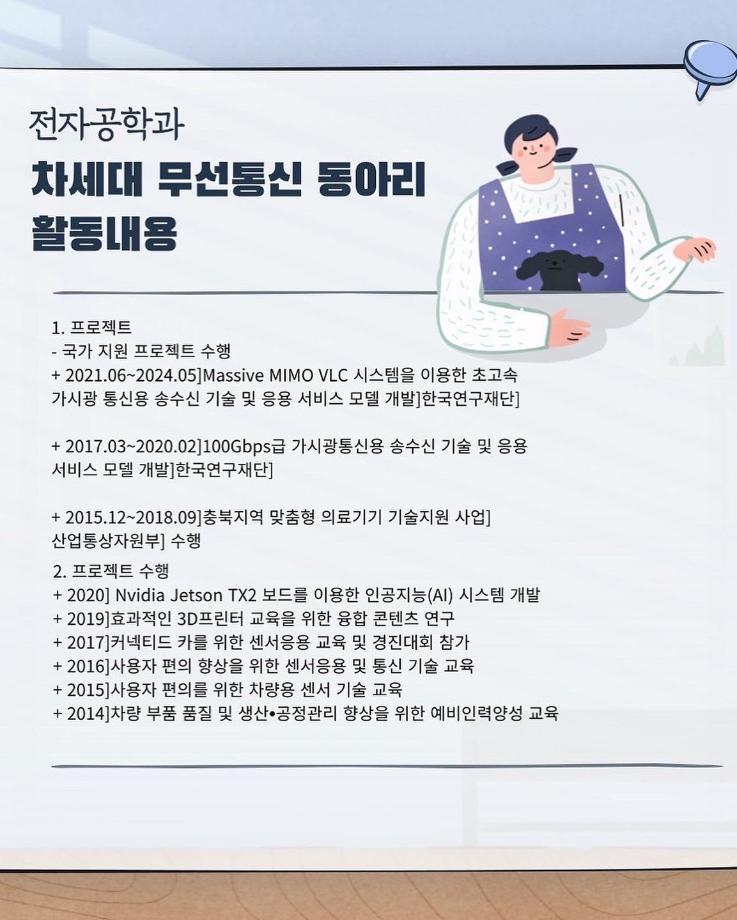 본문 시작 홈으로 커뮤니티 학과소개 교육과정 학과활동 커뮤니티 진로취업 입학상담 홈페이지가이드 포토갤러리 학과공지 포토갤러리 자유게시판 동영상 게시판 포토갤러리 페이스북 트위터 프린트 차세대 무선통신 동아리 홍보 전자공학과 3036 2023-01-17 차세대 무선통신 동아리 홍보입니다. 목록 이전주파수 동아리 홍보 다음 전자공학과 소개 및 학과 시설 소개 담당부서 : 전자공학과 담당자 : - 연락처 : 043-649-1683 최종수정일 : 2024-10-26 만족도조사 만족도 조사 이 페이지에서 제공하는 정보에 대하여 만족하시나요? 매우만족 만족 보통 불만족 매우불만족