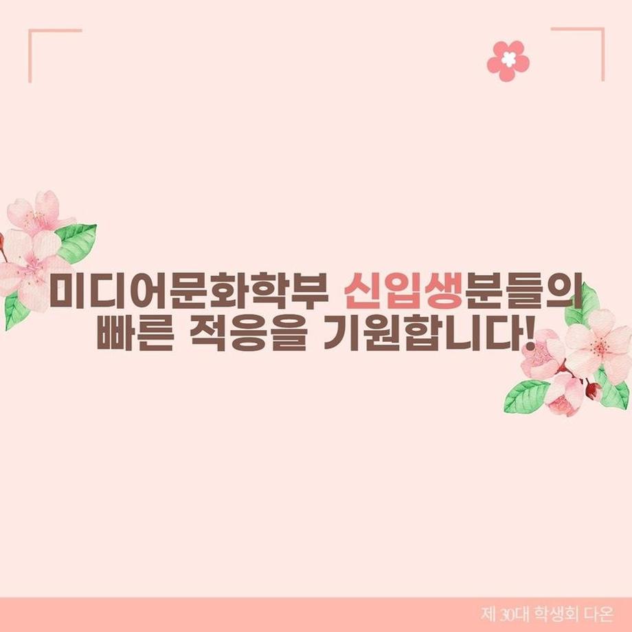 미디어문화학부 신입생분들의 빠른 적응을 저희 학생회 '다온'에서 응원합니다.