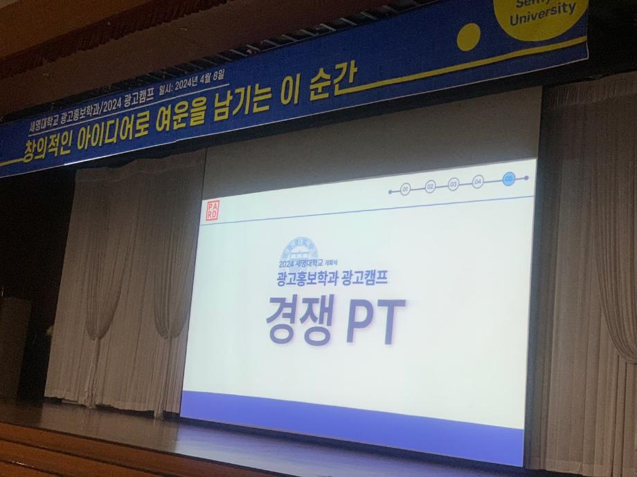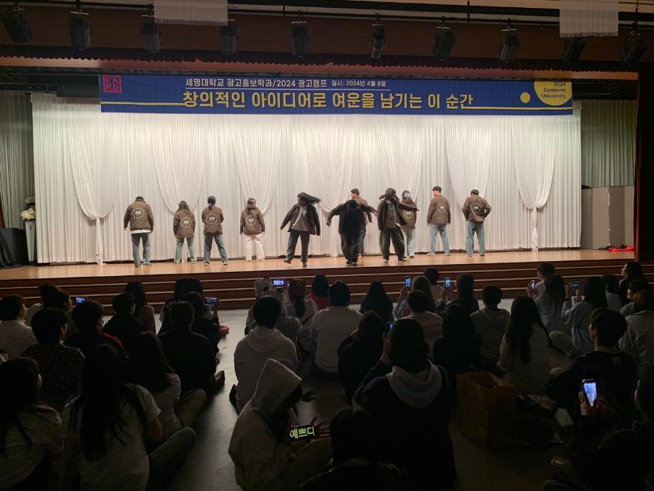 본문 시작 홈으로 특별CC프로그램 매력적인 학과소개 흥미로운 교육과정 특별CC프로그램 We can 취업 따뜻한 커뮤니티 홈페이지가이드 광고캠프 광고캠프 광고영상 제작실습 광고디자인 자격증취득 C&E(도전!경험!) 활동 작품 활동 활동 페이스북 트위터 프린트 2024광고캠프 광고홍보학과 2147 2024-07-17 세명대 광고홍보학과의 시그니처 프로그램 <2024년도 광고캠프> 개최 _일시 : 24년 4월 8~ 9일(1박 2일) _장소 : 영월 동강 시스타 _대상 : 광고홍보학과 1~4학년 _프로그램 : 광고기획서 경쟁 PT, 장기자랑, 요리경연대회, 게임, 힐링시간 등 목록 이전2023년 광고캠프 다음 2025광고캠프