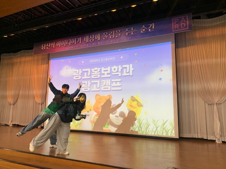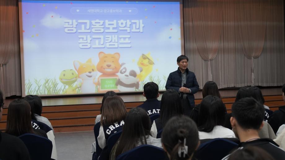 본문 시작 홈으로 특별CC프로그램 매력적인 학과소개 흥미로운 교육과정 특별CC프로그램 We can 취업 따뜻한 커뮤니티 홈페이지가이드 광고캠프 광고캠프 광고영상 제작실습 광고디자인 자격증취득 C&E(도전!경험!) 활동 작품 활동 활동 페이스북 트위터 프린트 2025광고캠프 광고홍보학과 1237 2025-04-18 세명대 광고홍보학과의 시그니처 프로그램 <2025년도 광고캠프> 개최 _일시 : 25년 3월 24~ 24일(1박 2일) _장소 : 영월 동강 시스타 _대상 : 광고홍보학과 1~4학년 _프로그램 : 광고기획서 경쟁 PT, 힐링시간 등 목록 이전2024광고캠프