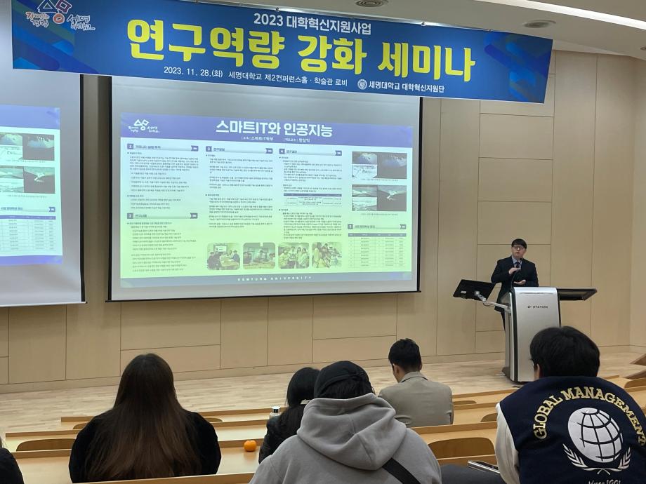23.11.28(화) 학술관 로비 및 제2컨퍼러스 홀에서 교수-학생이 연구 커뮤니티를 구성하여 전공 관련 주제를 설정하고, 연구를 수행하는 "전공역량 강화 프로그램"이 시행 되었습니다.