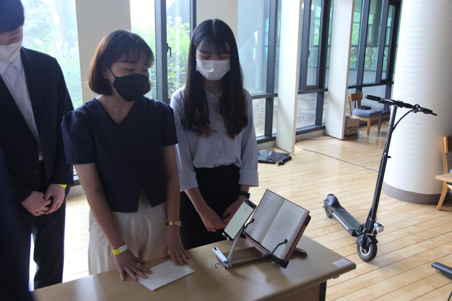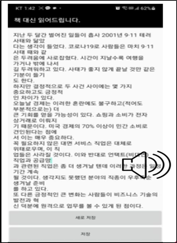 본문 시작 홈으로 SMIT 소식 SMIT 소개 SMIT 교육 SMIT 취업 SMIT 소식 SMIT 입학 홈페이지가이드 경진대회 공지사항 갤러리 경진대회 동아리 경진대회 페이스북 트위터 프린트 2021 캡스톤디자인 우수상 책 읽어드립니다 스마트IT학부 4306 2021-09-01 우수상 - 작품명 : 책 읽어드립니다. - 지도교수 : 권혁민 - 팀원 : 김형철, 강주원, 김진영, 공수현 시각장애인의 수는 많고 후천적 장애 발병률도 늘어가는 추세인데 독서를 하기 위한 충분한 인프라가 갖춰져 있지 않아 쉽게 접근 가능하도록 음성 인식과 음성 출력, 문자인식을 이용하여 어플을 제작하였다. 목록 이전2021 캡스톤디자인 장려상 Fitting go 다음 2021 캡스톤디자인 우수상 Arduino 기반 자동 높이 조절기능의 안면 체온 측정 장치 담당부서 : 스마트IT학부 담당자 : - 연락처 : 043-649-1275 최종수정일 : 2024-10-26 만족도조사 만족도 조사 이 페이지에서 제공하는 정보에 대하여 만족하시나요? 매우만족 만족 보통 불만족 매우불만족