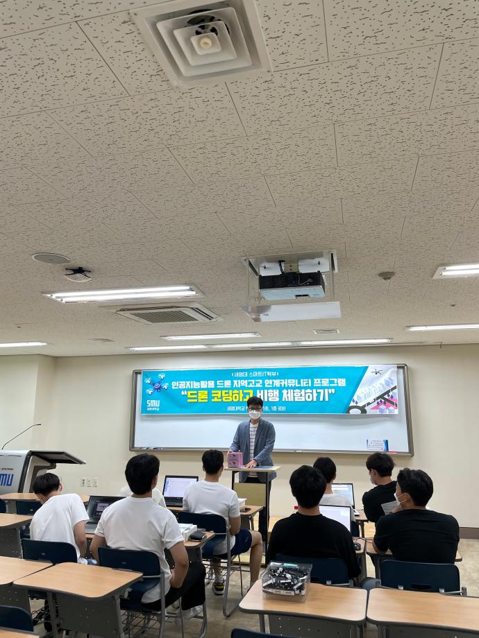 본문 시작 홈으로 SMIT 소식 SMIT 소개 SMIT 교육 SMIT 취업 SMIT 소식 SMIT 입학 홈페이지가이드 갤러리 공지사항 갤러리 경진대회 동아리 갤러리 페이스북 트위터 프린트 1차 제천제일고등학교 "드론 코딩하고 비행 체험하기" 정보통신학부 3927 2021-08-02 “ 인공지능활용 드론 지역고교 연계커뮤니티 프로그램 - 드론 코딩하고 비행 체험하기 ” 07월 19일(월) 학술관 101호에서 스마트IT학부는 “드론 코딩하고 비행 체험하기” 프로그램을 진행하였다. 해당 프로그램은 8월19일(목) 진행 예정인 “2021SM스마트 드론 레이싱 경진대회”와 관련하여 신청자중 사전 교육을 희망하는 팀을 대상으로 하여 진행되었으며 참여 학생들은 높은 만족도를 보였다. 참여고등학교 : 제천제일고등학교 목록 이전2022학년도 스마트IT학부 리플렛 다음 2차 디지털전자고등학교, 세명고등학교 "드론 코딩하고 비행 체험하기" 담당부서 : 스마트IT학부 담당자 : - 연락처 : 043-649-1275 최종수정일 : 2024-10-26 만족도조사 만족도 조사 이 페이지에서 제공하는 정보에 대하여 만족하시나요? 매우만족 만족 보통 불만족 매우불만족