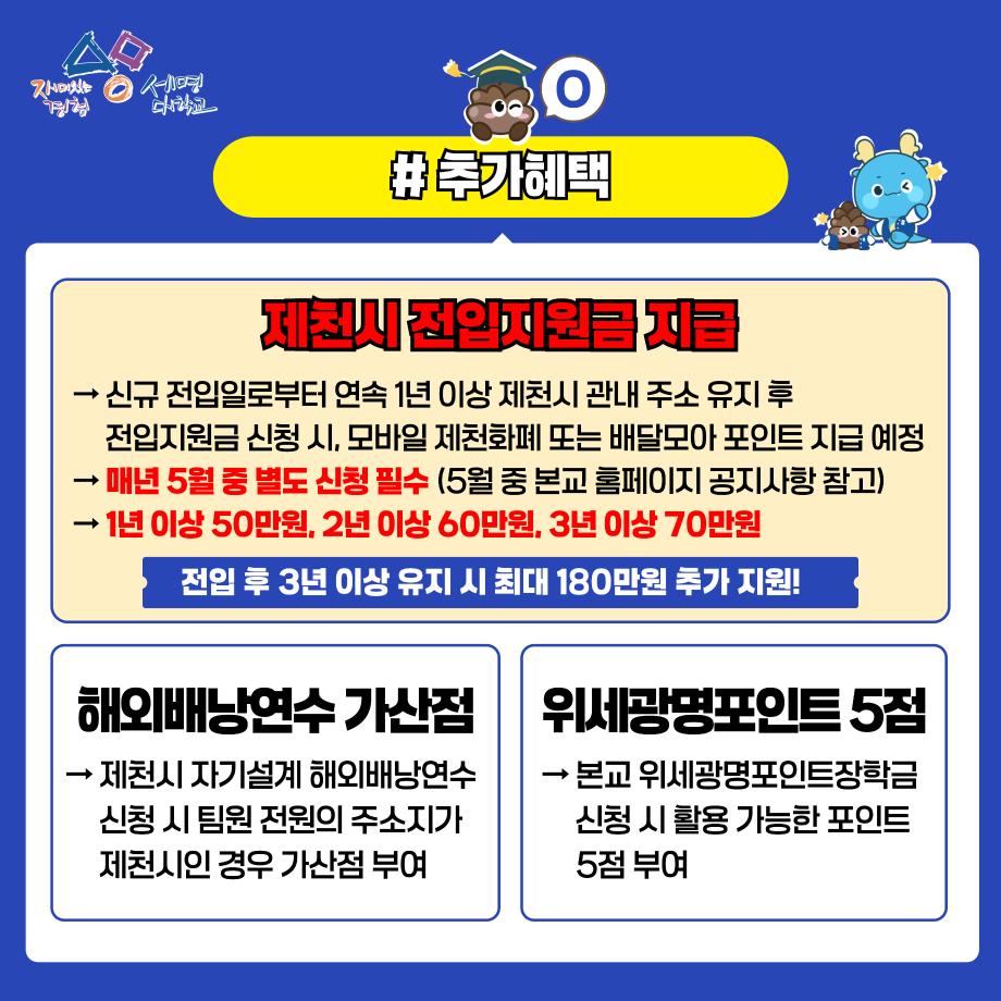 ※ 2024학년도 대비 제천시 전입지원금 확대(기존 10~30만원 → 확대 50~70만원)