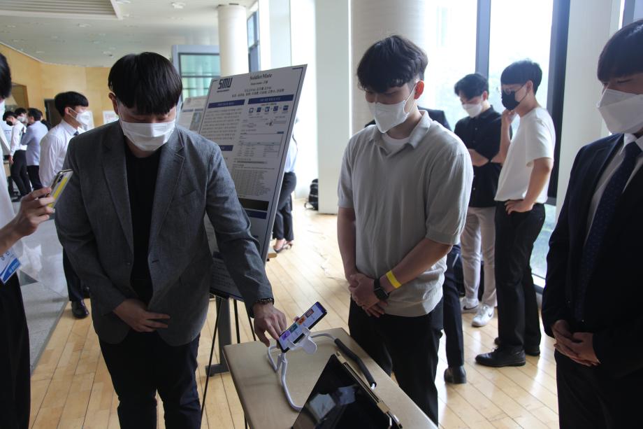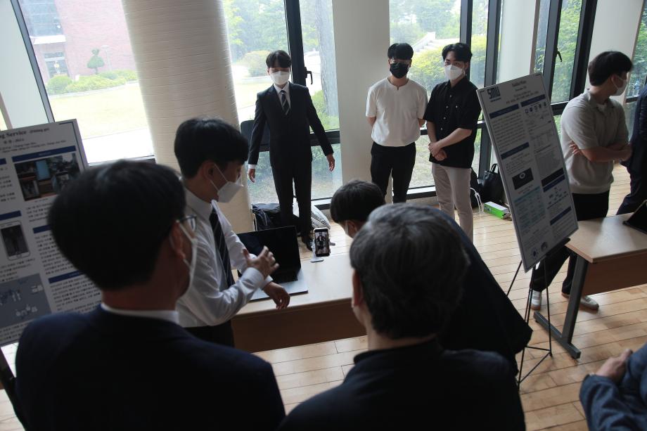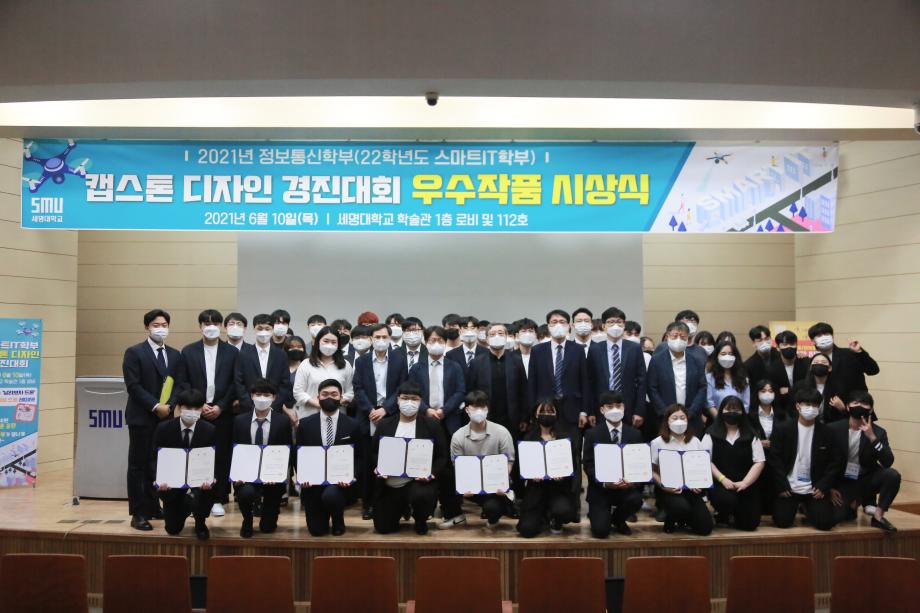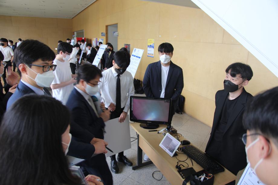 본문 시작 홈으로 SMIT 소식 SMIT 소개 SMIT 교육 SMIT 취업 SMIT 소식 SMIT 입학 홈페이지가이드 갤러리 공지사항 갤러리 경진대회 동아리 갤러리 페이스북 트위터 프린트 2021학년도 스마트IT학부 캡스톤디자인 경진대회 정보통신학부 4596 2021-06-10 2021년 06월 10일 정보통신학부에서는 캡스톤디자인 경진대회를 학술관1층 로비에서 진행하였습니다. 4학년 재학생들이 4년동안 학습한 지식의 미무리 단계로서 1년 동안 준비한 작품을 교수님들께 설명과 함께 시연하고 교수님들의 평가 후 우수작품을 선정하여 학술관112호에서 시상하였다. 캡스톤디자인 결과발표회를 통해서 재학생들은 산업현장에서 진행해야 하는 프로젝트 업무를 간접적으로 느낄 수 있는 뜻 깊은 자리 였습니다. 목록 이전스마트IT학부 홍보팀 “스마트하랑”발대식 다음 2022학년도 스마트IT학부 리플렛 담당부서 : 스마트IT학부 담당자 : - 연락처 : 043-649-1275 최종수정일 : 2024-10-26 만족도조사 만족도 조사 이 페이지에서 제공하는 정보에 대하여 만족하시나요? 매우만족 만족 보통 불만족 매우불만족
