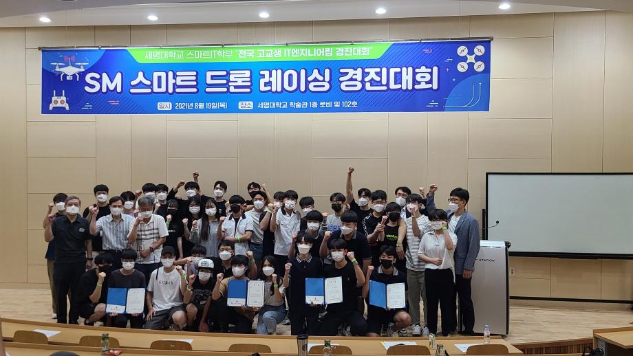 "SM 스마트 드론 레이싱 경진대회"를 학술관 로비 및 102호에서 개최했다.