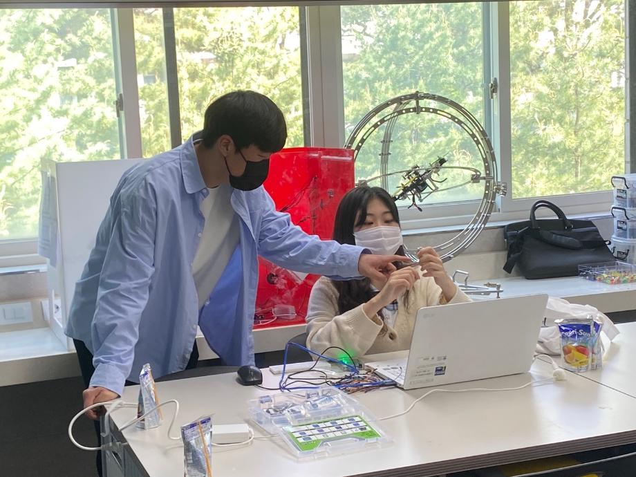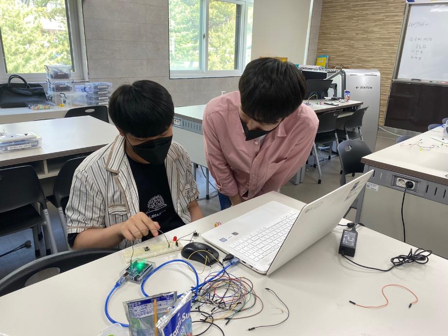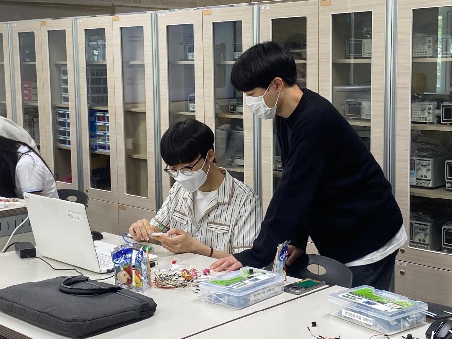 또한 스마트IT학부 전공기초 실습인 아두이노를 이용한 LED 및 음성제어 관련 코딩을 체험하는 실습 체험과 질의응답 시간과 학부 기념품 증정 및 단체 사진 촬영을 진행하였다.