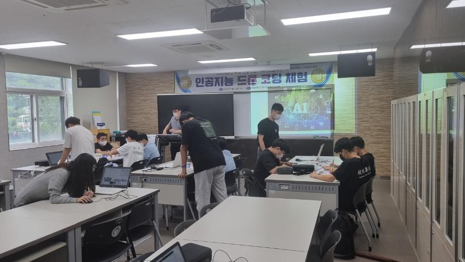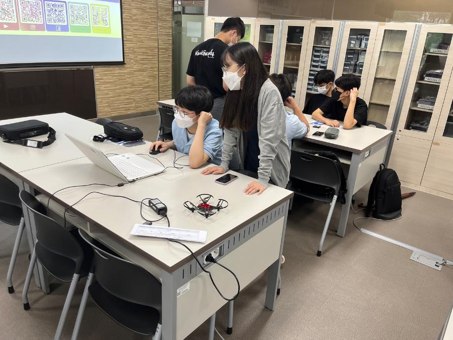 스마트IT학부 한상익 교수님의 주최로 학부 학생들과 함께 진행되었으며 '인공지능 드론 코딩 체험'이라는 주제의 프로그램이 진행 되었다.