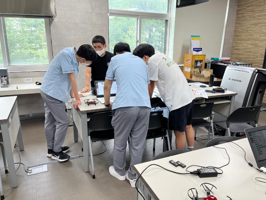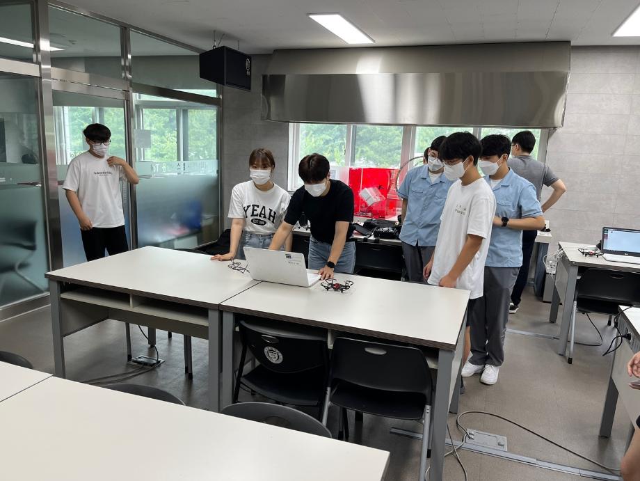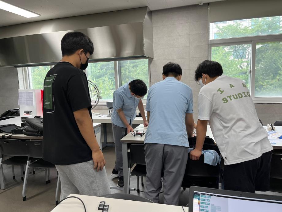 제천고 학생들 모두 코딩으로 드론 날리는 활동에 흥미를 가졌으며 학부 입학 및 드론 경진대회 홍보하는 시간이었다.