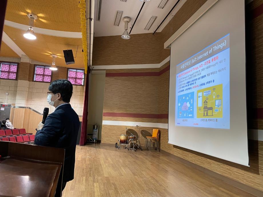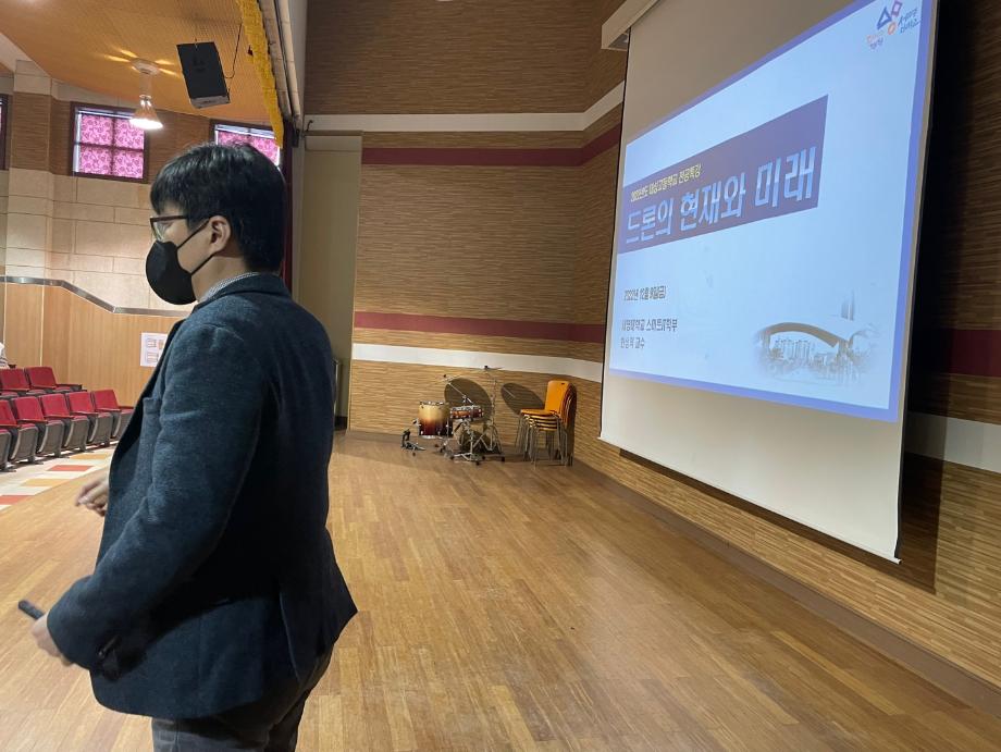 본문 시작 홈으로 SMIT 소식 SMIT 소개 SMIT 교육 SMIT 취업 SMIT 소식 SMIT 입학 홈페이지가이드 갤러리 공지사항 갤러리 경진대회 동아리 갤러리 페이스북 트위터 프린트 스마트IT학부 원주 대성고등학교 특강시행 스마트IT학부 4976 2022-12-09 2022년 12월 9일(금)에 원주 대성고등학교에서 3학년 학생 200여명을 대상으로 특강이 시행되었다. 스마트IT학부 조면균 교수님의 '생활속의 정보통신'과 한상익 교수님의 '드론의 현재와 미래'라는 주제로 이루어졌으며, 스마트IT학부의 전공과 관련된 내용이 소개되었다. 스마트IT학부 소개와 함께 정보통신, 드론, 인공지능에 대한 지식을 재미있게 풀어주면서 수능으로 지친 3학년 학생들과 유익한 시간을 보내는 계기가되었다. 목록 이전오선진 교수님 퇴임식 다음 스마트IT학부 2022학년도 2학기 전공학습동아리 수료 담당부서 : 스마트IT학부 담당자 : - 연락처 : 043-649-1275 최종수정일 : 2024-10-26 만족도조사 만족도 조사 이 페이지에서 제공하는 정보에 대하여 만족하시나요? 매우만족 만족 보통 불만족 매우불만족