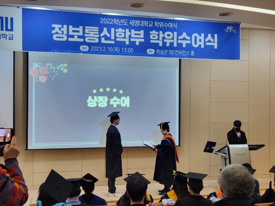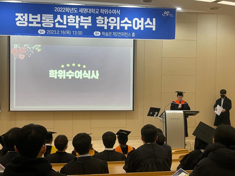 본문 시작 홈으로 SMIT 소식 SMIT 소개 SMIT 교육 SMIT 취업 SMIT 소식 SMIT 입학 홈페이지가이드 갤러리 공지사항 갤러리 경진대회 동아리 갤러리 페이스북 트위터 프린트 스마트IT학부 전기 학위수여식 스마트IT학부 4399 2023-02-16 스마트IT학부는 2023년 2월16일(목) 학술관 제2컨퍼런스 홀에서 전기 학위 수여식이 진행되었다. 학위 수여식은 교수님들의 학사행렬 입장으로 시작 되었으며. 학부장님의 학위수여식사, 학위 수여, 마무리 행사로 학사모 던지기로 진행되었다. 조면균 학부장님은 "드높은 자존감을 갖고 사회생활을 하며 미래 비전과 목표를 설정하고 성실한 사람이 되길 바란다" 라고 전했다. 목록 이전스마트IT학부 동계방학 특별활동 시행 다음 2023학년도 꿈 설계학기 1일차 담당부서 : 스마트IT학부 담당자 : - 연락처 : 043-649-1275 최종수정일 : 2024-10-26 만족도조사 만족도 조사 이 페이지에서 제공하는 정보에 대하여 만족하시나요? 매우만족 만족 보통 불만족 매우불만족