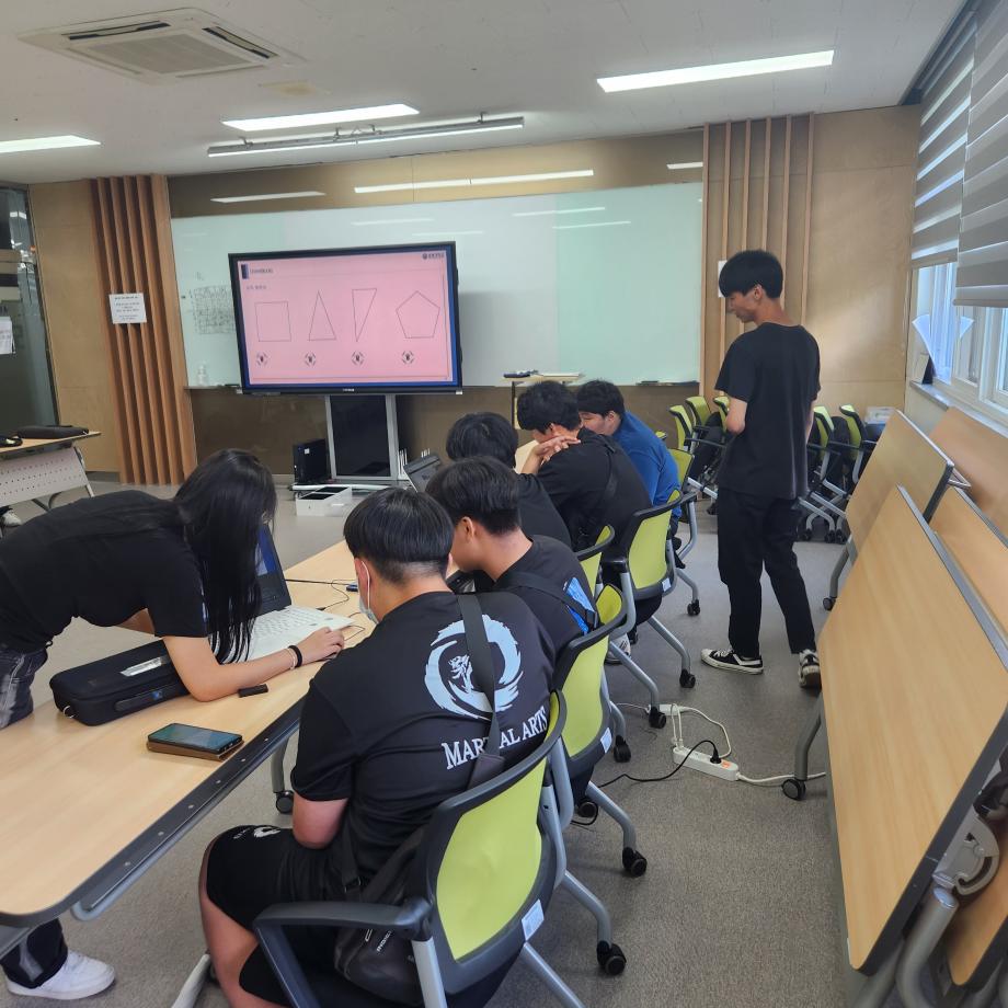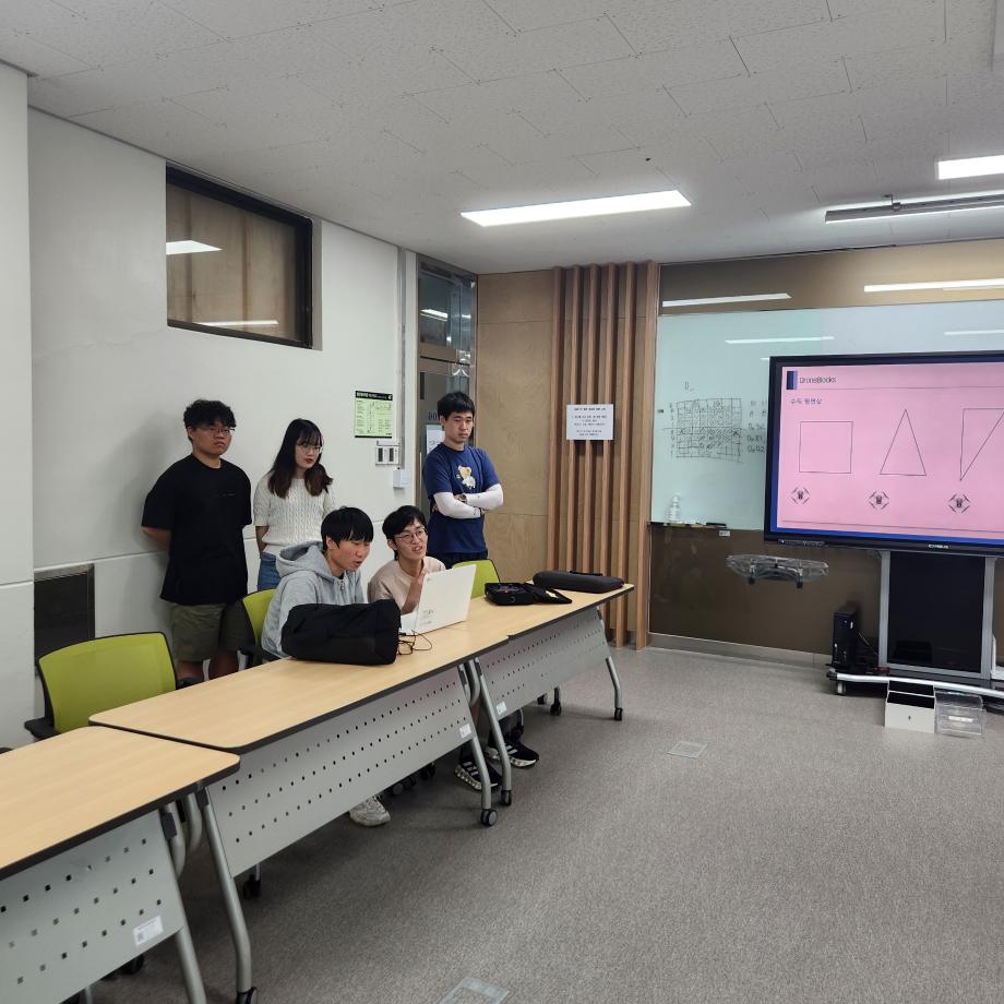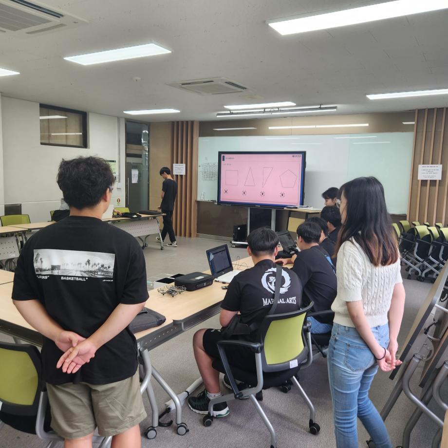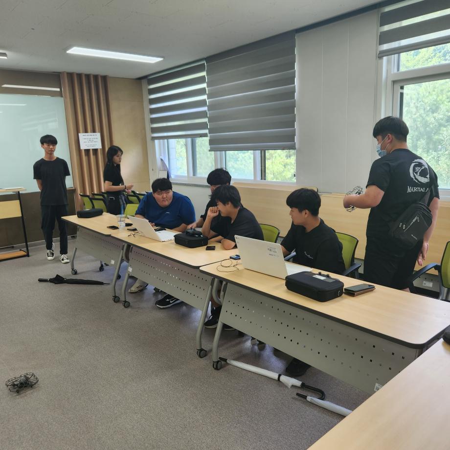 2023년 7월 26일(수)에는 제천 상업고 학생들의 첫번째 활동이 시행 되었으며, 오리엔테이션과 인공지능과 드론에 대한 기초적인 이론학습을 한 후 코딩 및 조종을 하는 실습활동을 하였다.