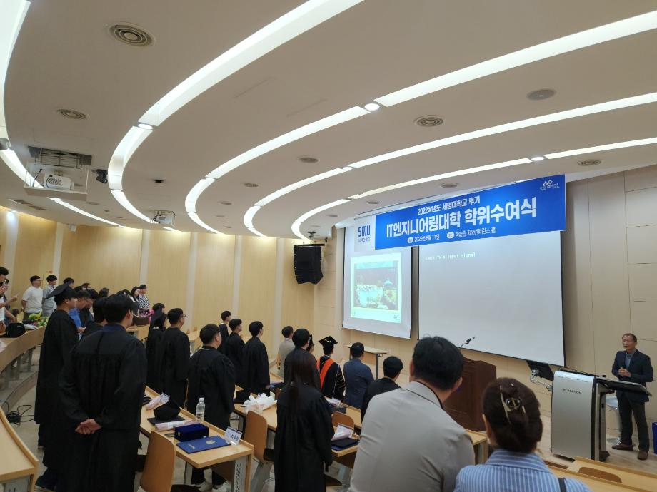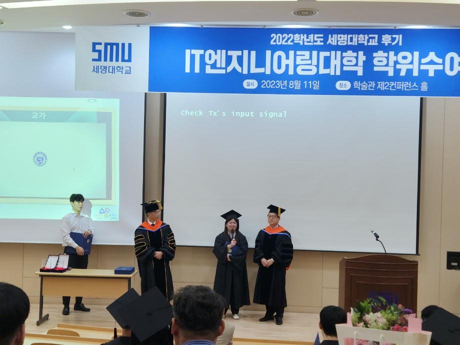 본문 시작 홈으로 SMIT 소식 SMIT 소개 SMIT 교육 SMIT 취업 SMIT 소식 SMIT 입학 홈페이지가이드 갤러리 공지사항 갤러리 경진대회 동아리 갤러리 페이스북 트위터 프린트 스마트IT학부 2022학년도 후기 학위수여식 스마트IT학부 7372 2023-08-11 스마트IT학부는 08월 11일(금) 학술관 102호에서 후기 학위수여식을 개최하였다. 후기 학위수여식은 IT엔지니어링 단과대학 주관으로 진행되었으며 스마트IT학부 6명의 졸업생이 학위를 수여받았다. 학위수여식에서 IT엔지니어링 단과대학 이완건 학장님과 총장님의 축사가 이루어졌다. 목록 이전스마트IT학부, "새온 자율주행 자동차 AI 미션 챌린지" 입상 다음 2023학년도 자기설계 해외배낭연수 담당부서 : 스마트IT학부 담당자 : - 연락처 : 043-649-1275 최종수정일 : 2024-10-26 만족도조사 만족도 조사 이 페이지에서 제공하는 정보에 대하여 만족하시나요? 매우만족 만족 보통 불만족 매우불만족