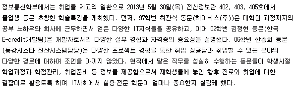 본문 시작 홈으로 SMIT 소식 SMIT 소개 SMIT 교육 SMIT 취업 SMIT 소식 SMIT 입학 홈페이지가이드 갤러리 공지사항 갤러리 경진대회 동아리 갤러리 페이스북 트위터 프린트 2013학년도 졸업작품전 개최 오선진 7832 2013-10-11 2013학년도 졸업작품전 개최 목록 이전졸업생 초청 학술특강 개최 다음 정보통신학부 연합 MT 개최 담당부서 : 스마트IT학부 담당자 : - 연락처 : 043-649-1275 최종수정일 : 2024-10-26 만족도조사 만족도 조사 이 페이지에서 제공하는 정보에 대하여 만족하시나요? 매우만족 만족 보통 불만족 매우불만족