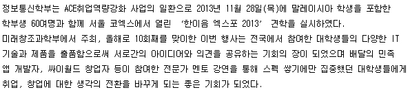 본문 시작 홈으로 SMIT 소식 SMIT 소개 SMIT 교육 SMIT 취업 SMIT 소식 SMIT 입학 홈페이지가이드 갤러리 공지사항 갤러리 경진대회 동아리 갤러리 페이스북 트위터 프린트 정보통신학부, 용두산정화활동 및 체육대회실시 오선진 7343 2014-04-15 정보통신학부, 용두산정화활동 및 체육대회실시 목록 이전정보통신학부, 취업박람회 견학 다음 정보통신학부, 2014학년도 졸업작품중간발표회 개최 담당부서 : 스마트IT학부 담당자 : - 연락처 : 043-649-1275 최종수정일 : 2024-10-26 만족도조사 만족도 조사 이 페이지에서 제공하는 정보에 대하여 만족하시나요? 매우만족 만족 보통 불만족 매우불만족