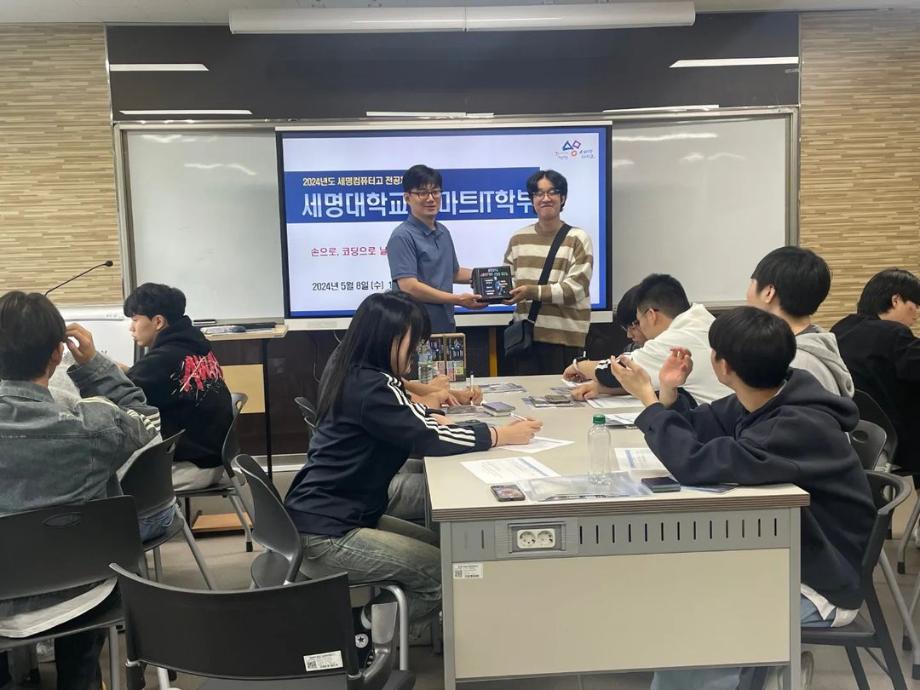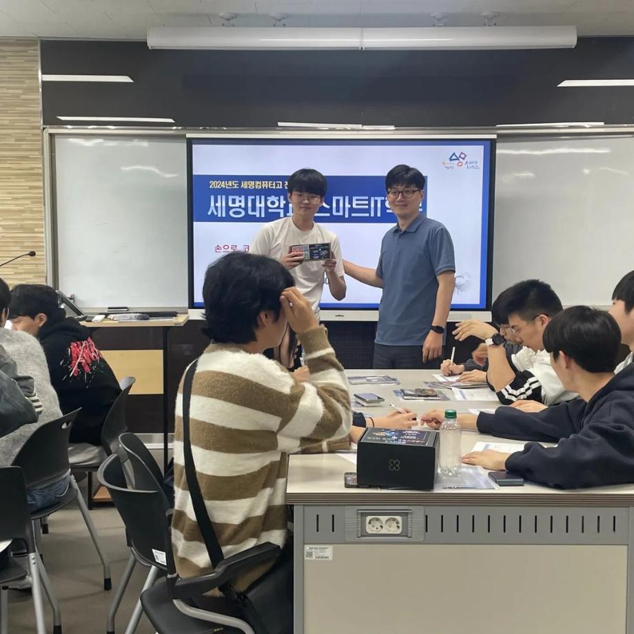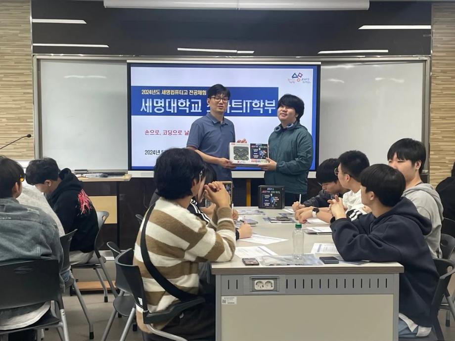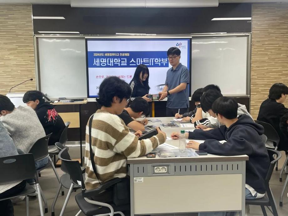 본문 시작 홈으로 SMIT 소식 SMIT 소개 SMIT 교육 SMIT 취업 SMIT 소식 SMIT 입학 홈페이지가이드 갤러리 공지사항 갤러리 경진대회 동아리 갤러리 페이스북 트위터 프린트 세명컴퓨터고등학교 전공 특강 시행 스마트IT학부 2866 2024-05-09 안녕하세요 세명대학교 스마트IT학부입니다🤗 2024년 5월 8일에 세명컴퓨터고등학교 학생들의 전공 체험 활동을 진행하였습니다. 세명대학교의 자매학교인 세명컴퓨터고등학교의 전공 체험 학습을 위해 스마트IT학부는 드론 축구와 드론 레이스를 진행했습니다. 게임의 우승자와 열심히 참여한 학생들에게 드론과 소정의 상품을 증정하였습니다. 목록 이전2024학년도 스마트IT학부 MT 다음 2024 청룡체전 담당부서 : 스마트IT학부 담당자 : - 연락처 : 043-649-1275 최종수정일 : 2024-10-26 만족도조사 만족도 조사 이 페이지에서 제공하는 정보에 대하여 만족하시나요? 매우만족 만족 보통 불만족 매우불만족