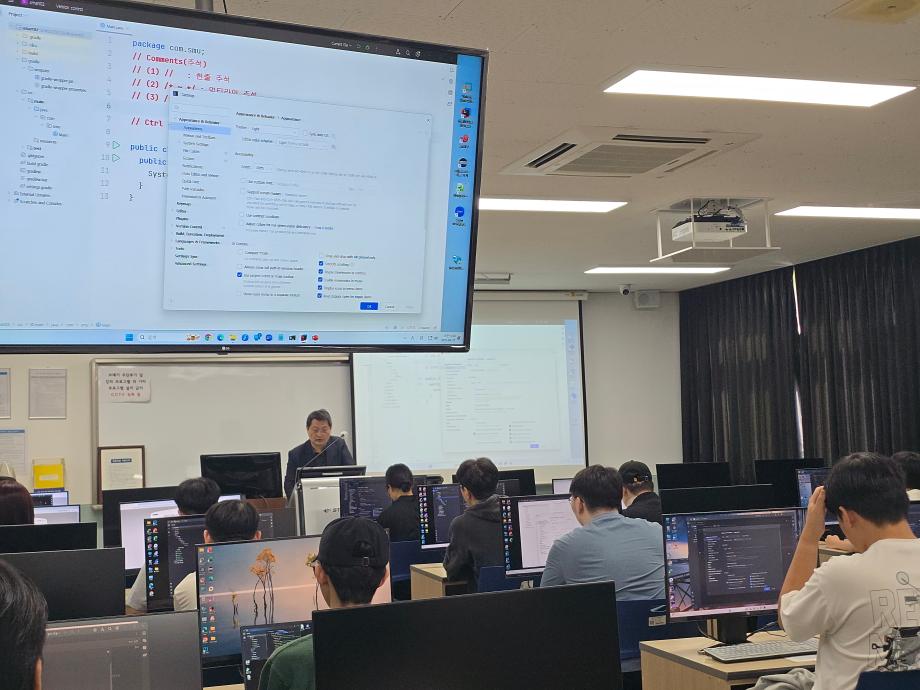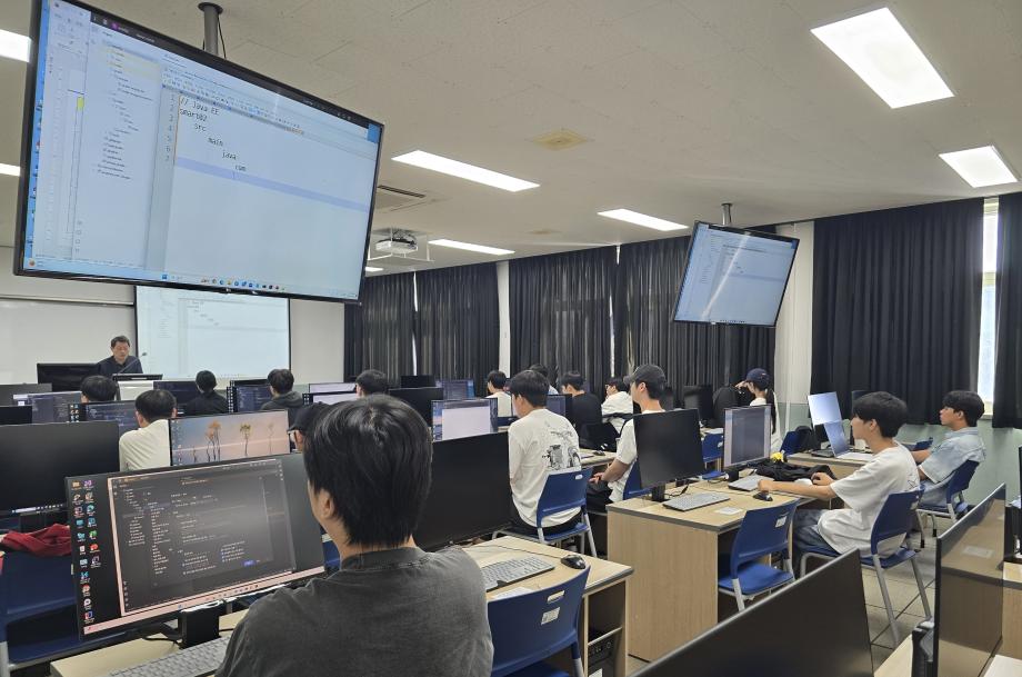 본문 시작 홈으로 SMIT 소식 SMIT 소개 SMIT 교육 SMIT 취업 SMIT 소식 SMIT 입학 홈페이지가이드 갤러리 공지사항 갤러리 경진대회 동아리 갤러리 페이스북 트위터 프린트 스마트IT학부 JAVA언어실습 전공 실습수업 스마트IT학부 1629 2025-09-11 스마트IT학부 JAVA언어실습 전공 실습수업 사진입니다. 모두들 적극적으로 그리고 즐겁게 수업에 참여하고 있습니다. 목록 이전스마트IT학부자료구조알고리즘 전공 수업 다음 2025 청룡체전 담당부서 : 스마트IT학부 담당자 : - 연락처 : 043-649-1275 최종수정일 : 2024-10-26 만족도조사 만족도 조사 이 페이지에서 제공하는 정보에 대하여 만족하시나요? 매우만족 만족 보통 불만족 매우불만족