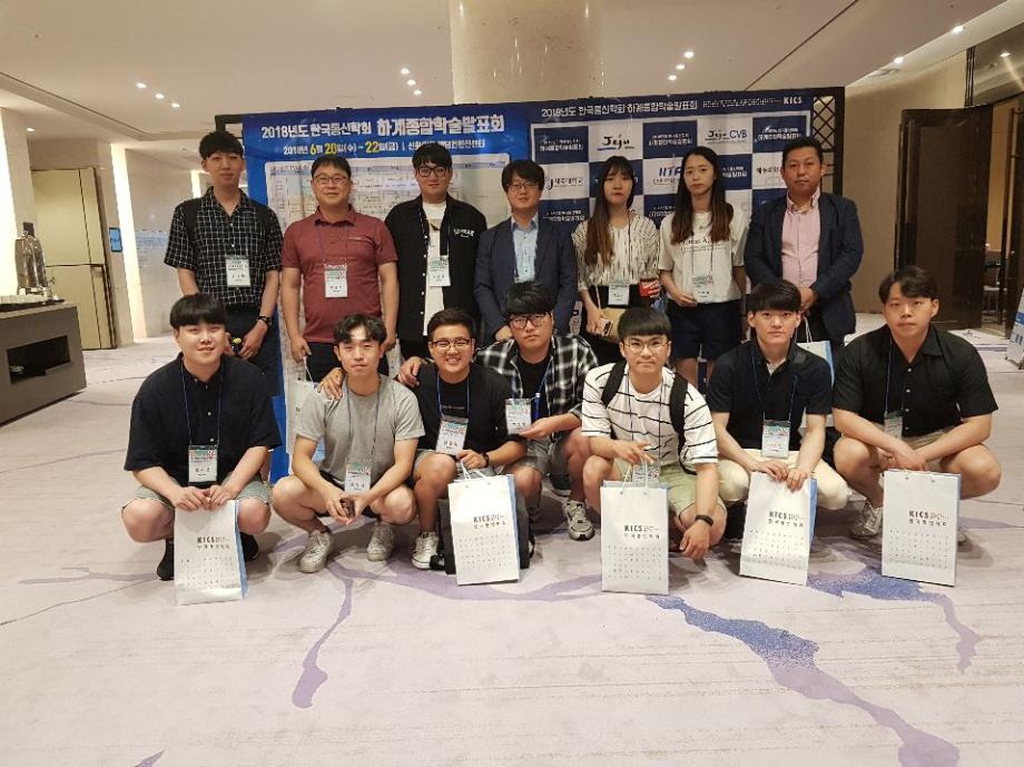 LINC+ IoT융합시스템학과 캡스톤디자인 'PM10:00'팀(지도교수 조면균 교수)은 6월 21일 제주 신화월드에서 개최된 국내 최대의 IT 학술대회 '2018 한국통신학회 하계종합학술발표회' 사물인터넷(IoT) 분야에서 '증강현실 코어를 이용한 현실공간과 가상공간의 연결통로 표현 방법'을 발표해 학술논문상을 수여받았습니다.