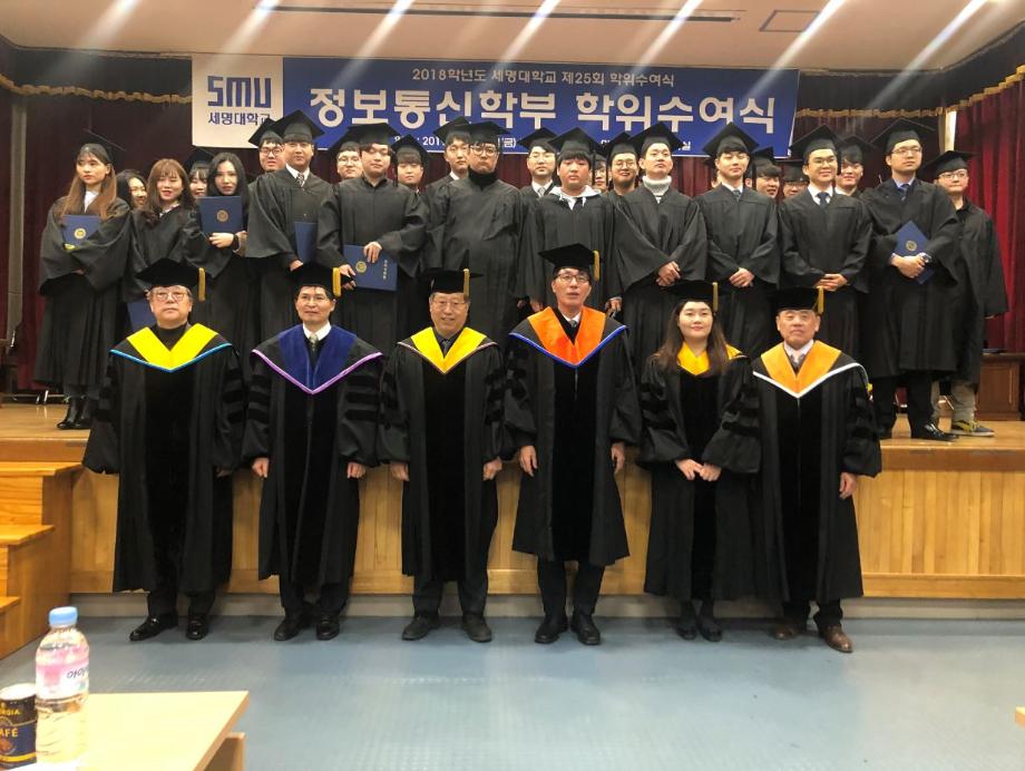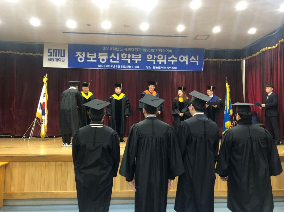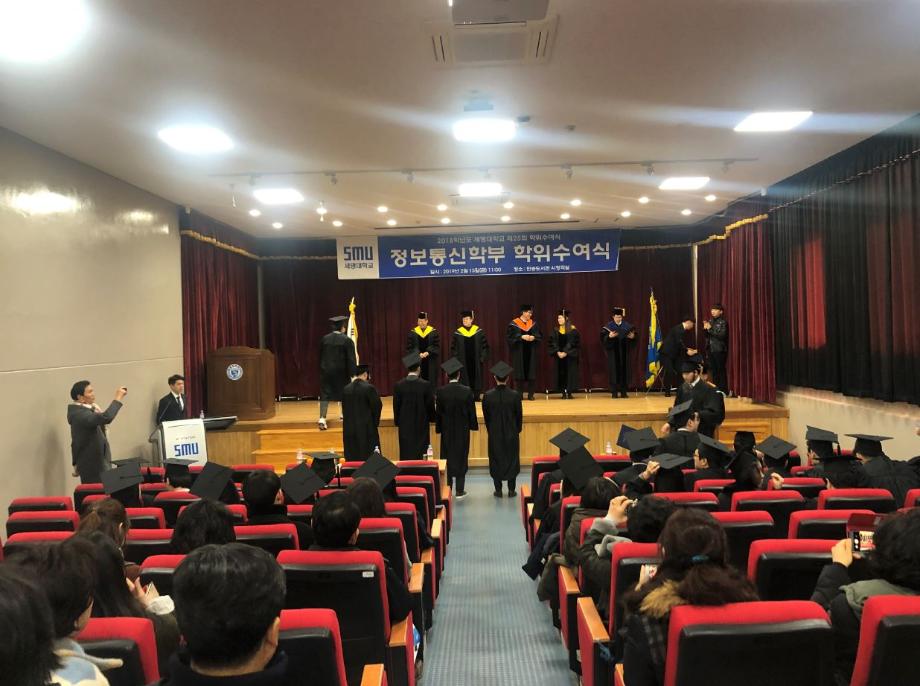 본문 시작 홈으로 SMIT 소식 SMIT 소개 SMIT 교육 SMIT 취업 SMIT 소식 SMIT 입학 홈페이지가이드 갤러리 공지사항 갤러리 경진대회 동아리 갤러리 페이스북 트위터 프린트 2018학년도 전기 학위수여식 정보통신학부 6474 2019-02-20 정보통신학부에서는 02월 15일(금) 민송도서관 시청각실에서 2018학년도 전기 학위수여식을 개최하였다. 정보통신학부에서 총 54명의 졸업생이 학위를 수여받았으며 학부수석 1명, 공로상 2명의 학생들이 상장을 받았다. 이용걸 총장은 축사에서 졸업생에게 “진정한 지성인으로 거듭난 졸업생들이 세상을 밝게 비추는 위세광명의 인재로 활약하게 될 날을 기대한다”며 “졸업생들의 앞날에 무궁한 축복과 발전이 있기를 기원한다”고 전했다. 목록 이전2018학년도 동계방학 중 정보처리기사 자격증 특강 진행 다음 2019학년도 정보통신학부 신입생 '꿈 설계학기' 담당부서 : 스마트IT학부 담당자 : - 연락처 : 043-649-1275 최종수정일 : 2024-10-26 만족도조사 만족도 조사 이 페이지에서 제공하는 정보에 대하여 만족하시나요? 매우만족 만족 보통 불만족 매우불만족
