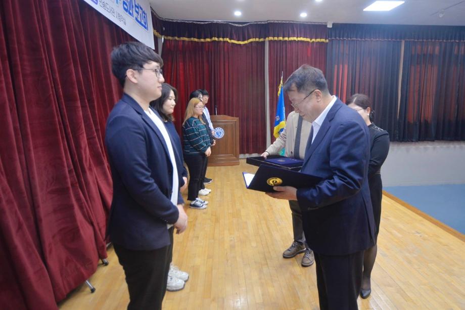 본문 시작 홈으로 SMIT 소식 SMIT 소개 SMIT 교육 SMIT 취업 SMIT 소식 SMIT 입학 홈페이지가이드 갤러리 공지사항 갤러리 경진대회 동아리 갤러리 페이스북 트위터 프린트 2019학년도 자기설계 해외배낭연수 성과보고회 수상 정보통신학부 6918 2019-11-12 지난 10월 31일(목) 민송도서관 1층 시청각실에서 2019년 자기설계 해외배낭연수 성과보고회가 개최되었다. 이 날은 2019년 자기설계 해외배낭연수 우수 연수 사례를 본교 재학생과 공유하고 2020년 프로그램 시행에 대한 소통의 장을 마련하고자 시행되었으며 많은 재학생들이 참석한 가운데 정보통신학부에서는 'CHARM팀'(엄0호, 강0성, 이0재)이 우수상을 수여받았다. 목록 이전2019학년도 일자리센터지원 IT엔지니어링대학 멘토링사업 다음 한국멀티미디어학회 춘계학술대회 우수논문상 수상 담당부서 : 스마트IT학부 담당자 : - 연락처 : 043-649-1275 최종수정일 : 2024-10-26 만족도조사 만족도 조사 이 페이지에서 제공하는 정보에 대하여 만족하시나요? 매우만족 만족 보통 불만족 매우불만족