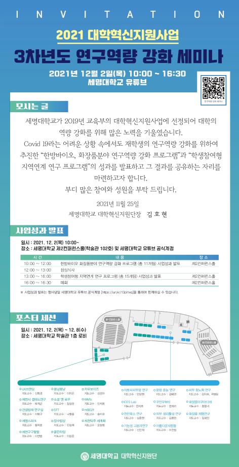 본문 시작 홈으로 커뮤니티 학부소개 진로·취업 교육과정 커뮤니티 대학원 입학상담 홈페이지가이드 갤러리 공지사항 문의게시판 학생회 전공동아리 동문회 갤러리 전공자료실 Youtube Instagram Facebook Blog 갤러리 페이스북 트위터 프린트 2021 대학혁신지원사업 - 3차년도 연구역량 강화세미나 바이오식품산업학부 7047 2021-12-06 2021년 12월 2일 진행된 "2021 대학혁신지원사업 - 3차년도 연구역량 강화세비나"에 오창환 교수가 진행한 "제천탁주세계화"의 결과를 3학년 나선영 학생이 발표하였습니다. 목록 이전2021 실험조리 교과 수익금_학과 발전기금으로 기부 다음 2021학년도 2학기 김지연 교수님_한국조리 담당부서 : 바이오식품산업학부 담당자 : - 연락처 : 043-649-1431 최종수정일 : 2024-10-26 만족도조사 만족도 조사 이 페이지에서 제공하는 정보에 대하여 만족하시나요? 매우만족 만족 보통 불만족 매우불만족