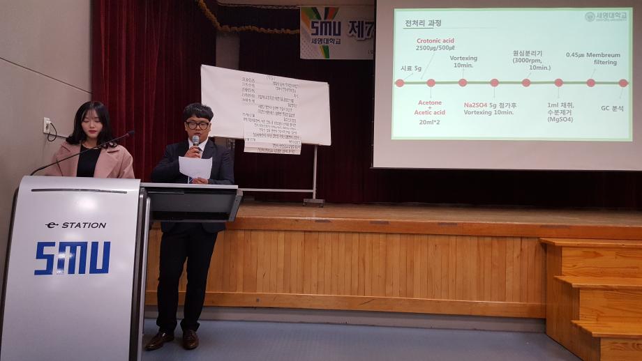 식품안전 실험실에서는 방학 중에도 식품 분석과 첨가물 분석 등의 실험 활동을 진행하였으며, 그 결과로 Scopus급 유명학술지 Journal of the Korean Society of Food Science and Nutrition (한국식품영양과학회지) 2018년 11월호에 "아세톤 추출에 의한 빵 중 프로피온산 분석"이라는 제목으로 주저자 황지현 (2018년 졸업) 및 신대용 (2018년 졸업) 이름으로 논문을 발표하였습니다(아래 논문 링크 참조). 본 연구실에서는 식품의 품질관리 (QA/QC) 및 안전관련 화학적 분석을 연구하고 있으며, 관심있는 학생은 이학관 305호 오창환 교수님께 상의하기 바랍니다.