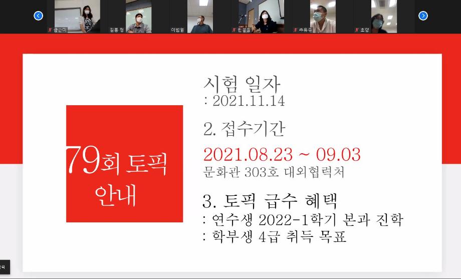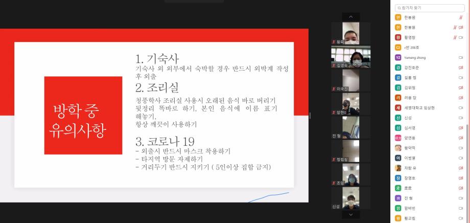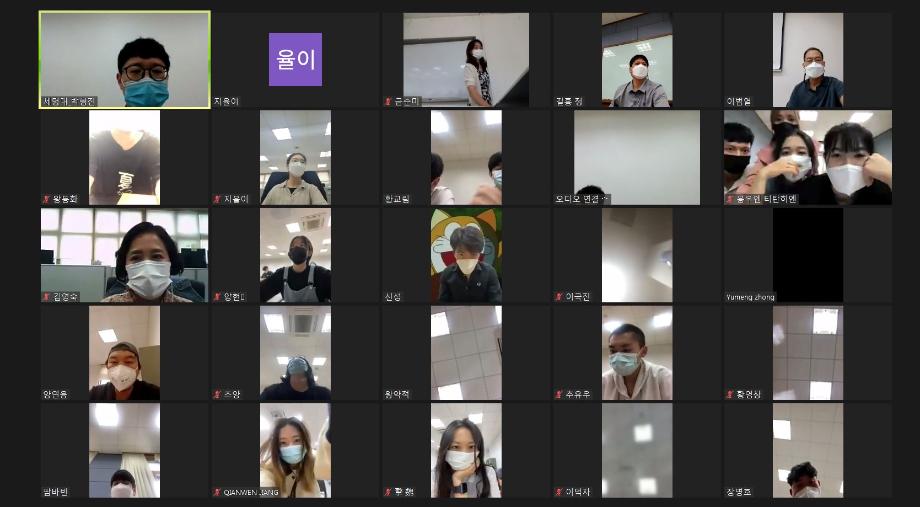 본문 시작 2021-여름 한국어연수생 종강식 국제교육원 2319 2021-08-13 2021-여름 한국어연수생 종강식 코로나19로 인해 비대면 종강식을 실시하였습니다. 목록 이전2021-여름 생활적응지원프로그램 다음 2021-가을학기 신입생 오리엔테이션 담당부서 : 국제교육원 담당자 : - 연락처 : 043-649-1185 최종수정일 : 2024-10-26 만족도조사 만족도 조사 이 페이지에서 제공하는 정보에 대하여 만족하시나요? 매우만족 만족 보통 불만족 매우불만족