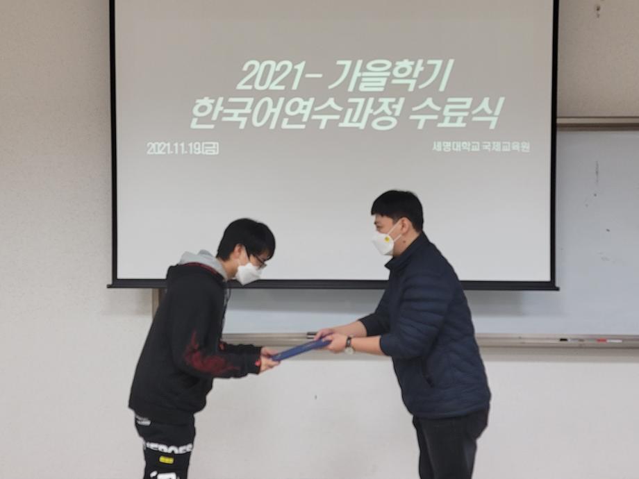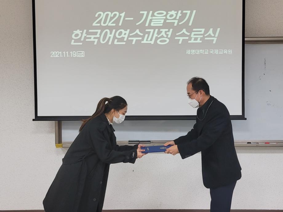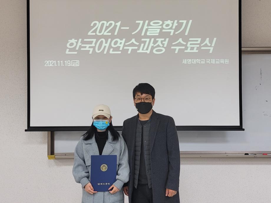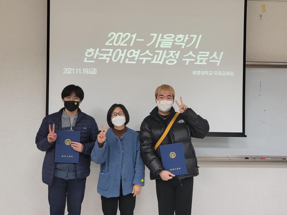 본문 시작 2021-가을학기 수료식 국제교육원 2329 2021-11-19 2021-가을학기 수료식 목록 이전2021-호스트 패밀리 다음 2021- 외국인 유학생 한국문화체험학습(에버랜드) 담당부서 : 국제교육원 담당자 : - 연락처 : 043-649-1185 최종수정일 : 2024-10-26 만족도조사 만족도 조사 이 페이지에서 제공하는 정보에 대하여 만족하시나요? 매우만족 만족 보통 불만족 매우불만족