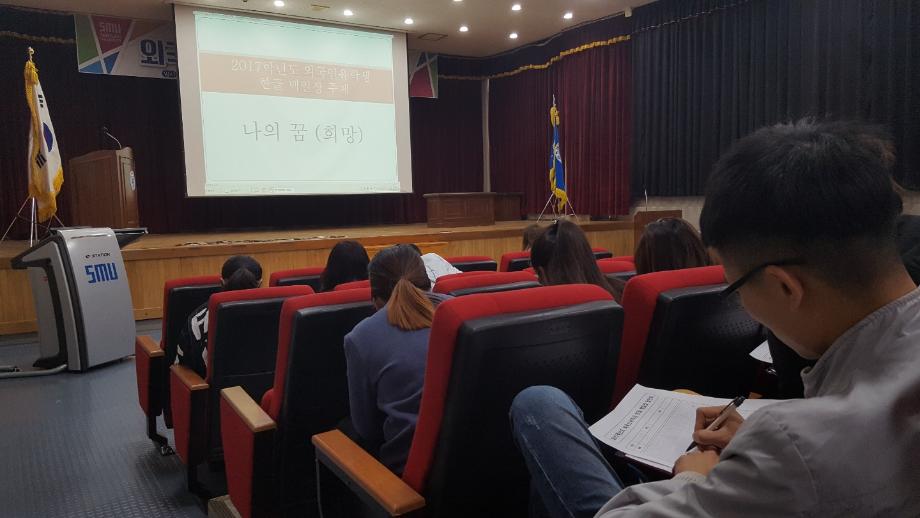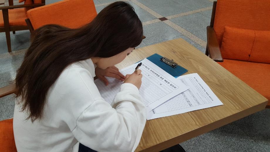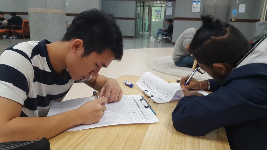 본문 시작 외국인유학생 백일장 개최 국제교육원 5460 2017-10-13 외국인 유학생들을 대상으로 백일장을 개최했습니다. 학생들은 민송도서관 내에서 자유롭게 글을 쓰며 자신의 생각을 키워나갔습니다. 국제교육원에서는 이에 따른 시상식도 진행했습니다. 목록 이전2017 외국인 유학생 채용박람회 다음 외국인 유학생 안동하회마을 문화체험 담당부서 : 국제교육원 담당자 : - 연락처 : 043-649-1185 최종수정일 : 2024-10-26 만족도조사 만족도 조사 이 페이지에서 제공하는 정보에 대하여 만족하시나요? 매우만족 만족 보통 불만족 매우불만족