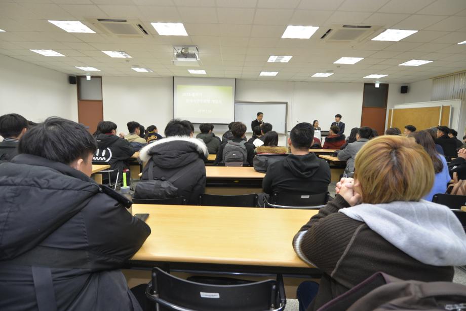 본문 시작 2018 봄학기 한국어 연수과정 개강식 국제교육원 5499 2018-03-12 03월 12일 국제교육원에서는 2018 봄학기 개강식을 진행하였습니다. 학생들의 한층 밝아진 표정을 통해서 성큼 다가온 봄기운을 느낄 수 있었습니다. 목록 이전2017년 겨울학기 한국어 연수과정 수료식 다음 2018-1 외국인 유학생 조기적응 프로그램 담당부서 : 국제교육원 담당자 : - 연락처 : 043-649-1185 최종수정일 : 2024-10-26 만족도조사 만족도 조사 이 페이지에서 제공하는 정보에 대하여 만족하시나요? 매우만족 만족 보통 불만족 매우불만족
