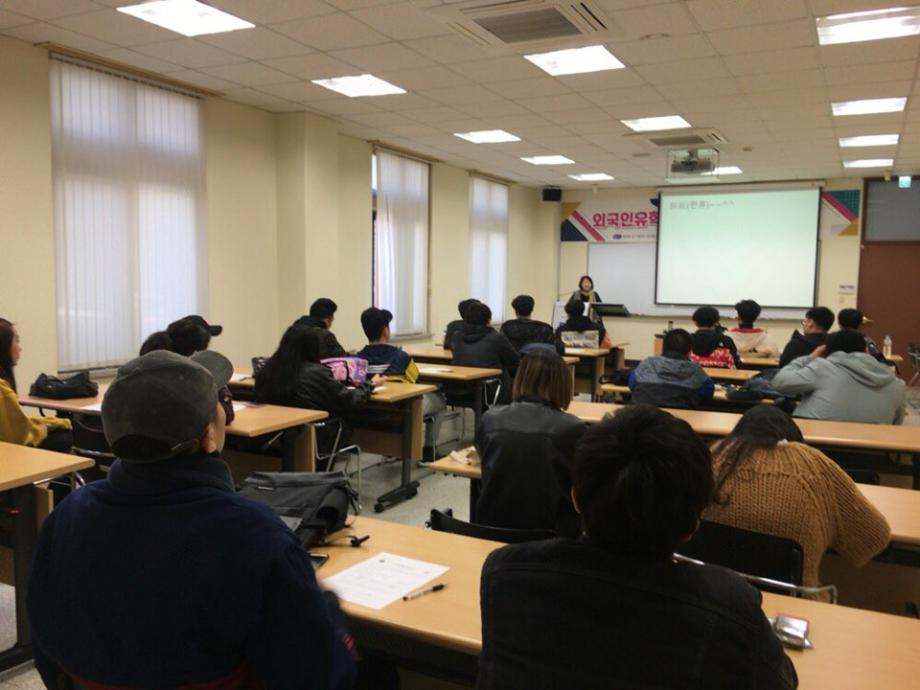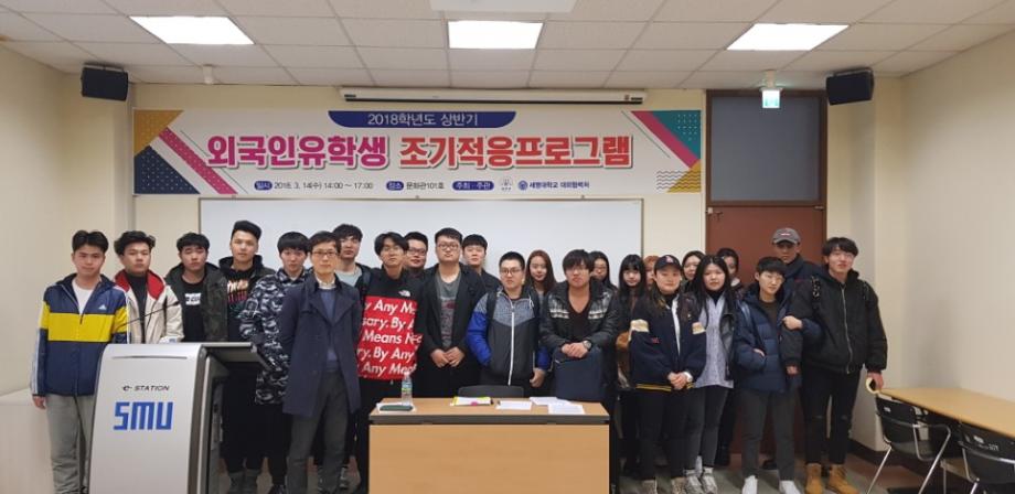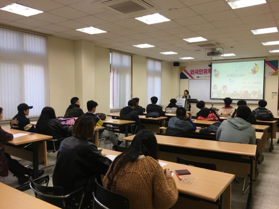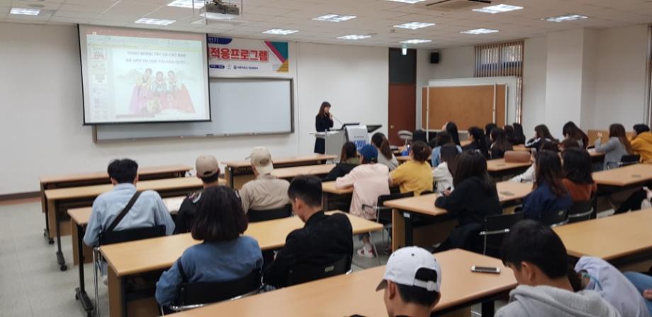 본문 시작 2018-1 외국인 유학생 조기적응 프로그램 국제교육원 6006 2018-03-14 03월 14일 법무부에서 주관하는 입국 초기의 외국인에게 필요한 정보를 제공하는 조기적응 프로그램을 진행하였습니다. 본 교육에서는 필수적인 생활정보, 법률/제도 등 을 알려주어 보다 편한 한국 생활을 영위할 수 있도록 도움을 주는데 목적이 있습니다. 목록 이전2018 봄학기 한국어 연수과정 개강식 다음 2018-1 외국인 유학생 간담회 담당부서 : 국제교육원 담당자 : - 연락처 : 043-649-1185 최종수정일 : 2024-10-26 만족도조사 만족도 조사 이 페이지에서 제공하는 정보에 대하여 만족하시나요? 매우만족 만족 보통 불만족 매우불만족