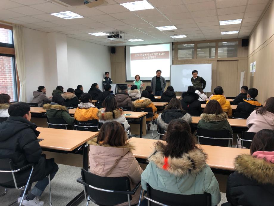본문 시작 2018 겨울학기 신입 연수생 오리엔테이션 국제교육원 5026 2018-12-07 2018 겨울학기 신입 연수생 오리엔테이션 목록 이전2018 가을학기 한국어 연수과정 수료식 다음 2018 겨울학기 한국어연수생 개강식 담당부서 : 국제교육원 담당자 : - 연락처 : 043-649-1185 최종수정일 : 2024-10-26 만족도조사 만족도 조사 이 페이지에서 제공하는 정보에 대하여 만족하시나요? 매우만족 만족 보통 불만족 매우불만족