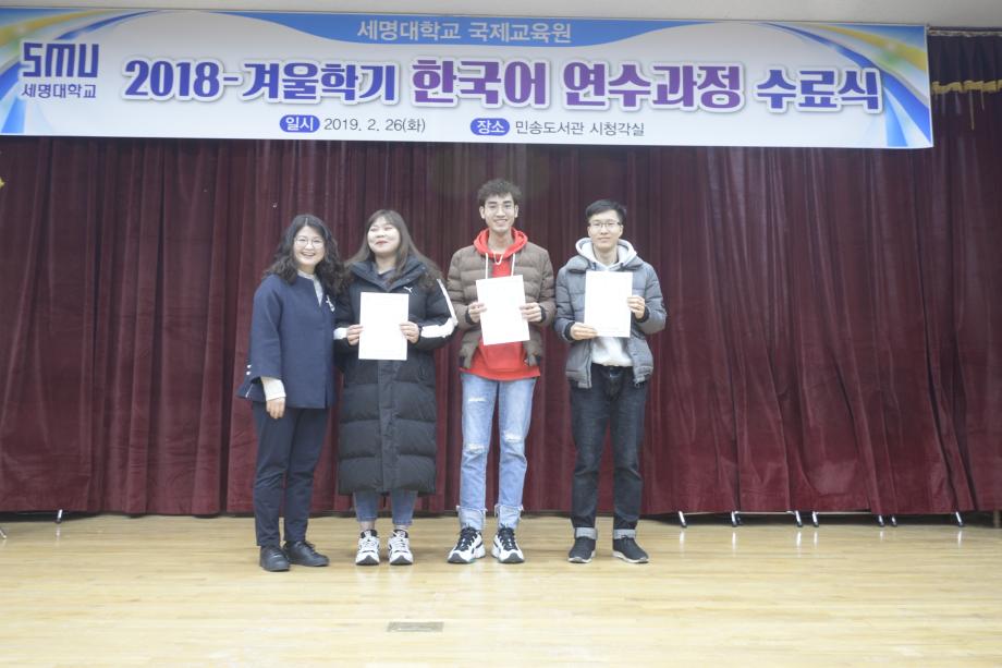 본문 시작 2018 겨울학기 한국어연수과정 수료식 국제교육원 5061 2019-02-26 2018-겨울학기 한국어연수과정 수료식 목록 이전2018 겨울학기 외국인유학생 설맞이 간담회 다음 2019 봄학기 신입연수생 간담회 담당부서 : 국제교육원 담당자 : - 연락처 : 043-649-1185 최종수정일 : 2024-10-26 만족도조사 만족도 조사 이 페이지에서 제공하는 정보에 대하여 만족하시나요? 매우만족 만족 보통 불만족 매우불만족