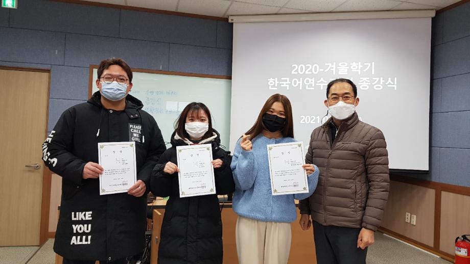 본문 시작 2020-겨울학기 한국어연수생 수료식 국제교육원 3208 2021-02-18 2020-겨울학기 한국어연수생 수료식 목록 이전2020-겨울학기 설맞이 유학생활적응지원 이전2021-봄학기 신입한국어연수생 OT 담당부서 : 국제교육원 담당자 : - 연락처 : 043-649-1185 최종수정일 : 2024-10-26 만족도조사 만족도 조사 이 페이지에서 제공하는 정보에 대하여 만족하시나요? 매우만족 만족 보통 불만족 매우불만족