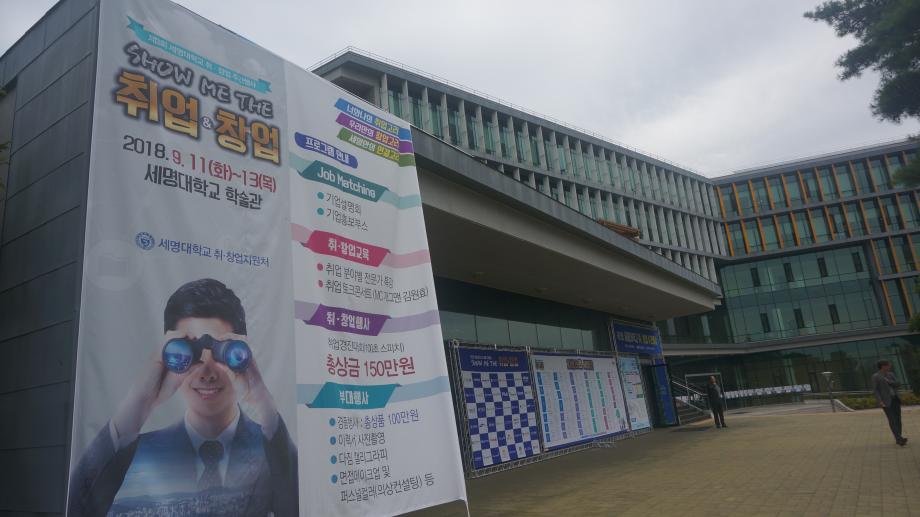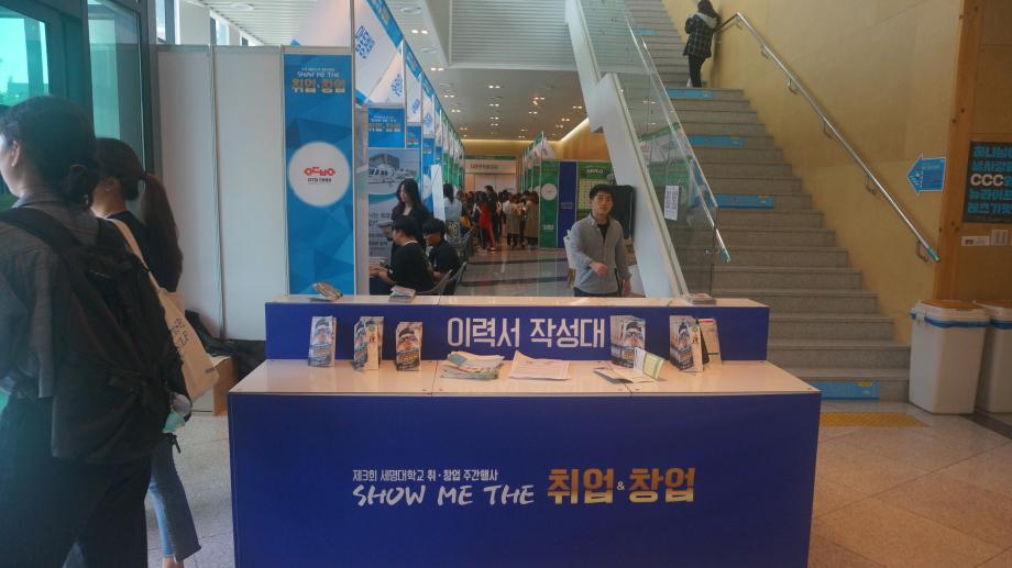 본문 시작 Photo SMU 세명소개 입학/취업 대학/대학원 학사지원 대학생활 연구/산학 기관/시설 SMU Story 소통·공감 학교기업 홈페이지가이드 학생활동 News@SMU 공지사항 보도자료 Photo SMU Media SMU 민송백일장 해카톤 경진대회 학생활동 페이스북 트위터 프린트 제3회 세명대학교 취창업주간행사 기획실 7038 2018-09-13 제3회 세명대학교 취창업주간행사 세명대학교 재학생의 취업과 창업 역량강화를 위한 행사이다. 취업과 창업을 위한 특강 및 설명회가 현장에서 진행되며 실제 기업 인사 담당자가 참가하는 채용부스도 운영한다. 그 외에도 면접 메이크업, 이력서 사진촬영, 인적성 검사 등 다채로운 부대행사도 지원한다. 목록 이전제28회 청룡축전 다음 중국어 시 낭송 대회 담당부서 : 홍보센터 담당자 : 홍보센터 연락처 : 043-649-1175 최종수정일 : 2024-10-26 만족도조사 만족도 조사 이 페이지에서 제공하는 정보에 대하여 만족하시나요? 매우만족 만족 보통 불만족 매우불만족